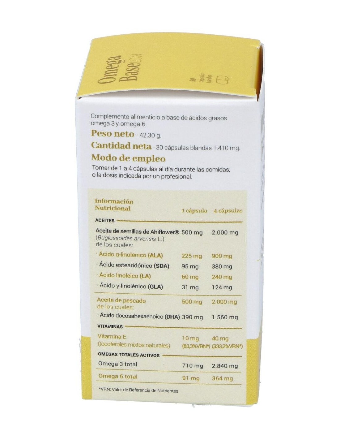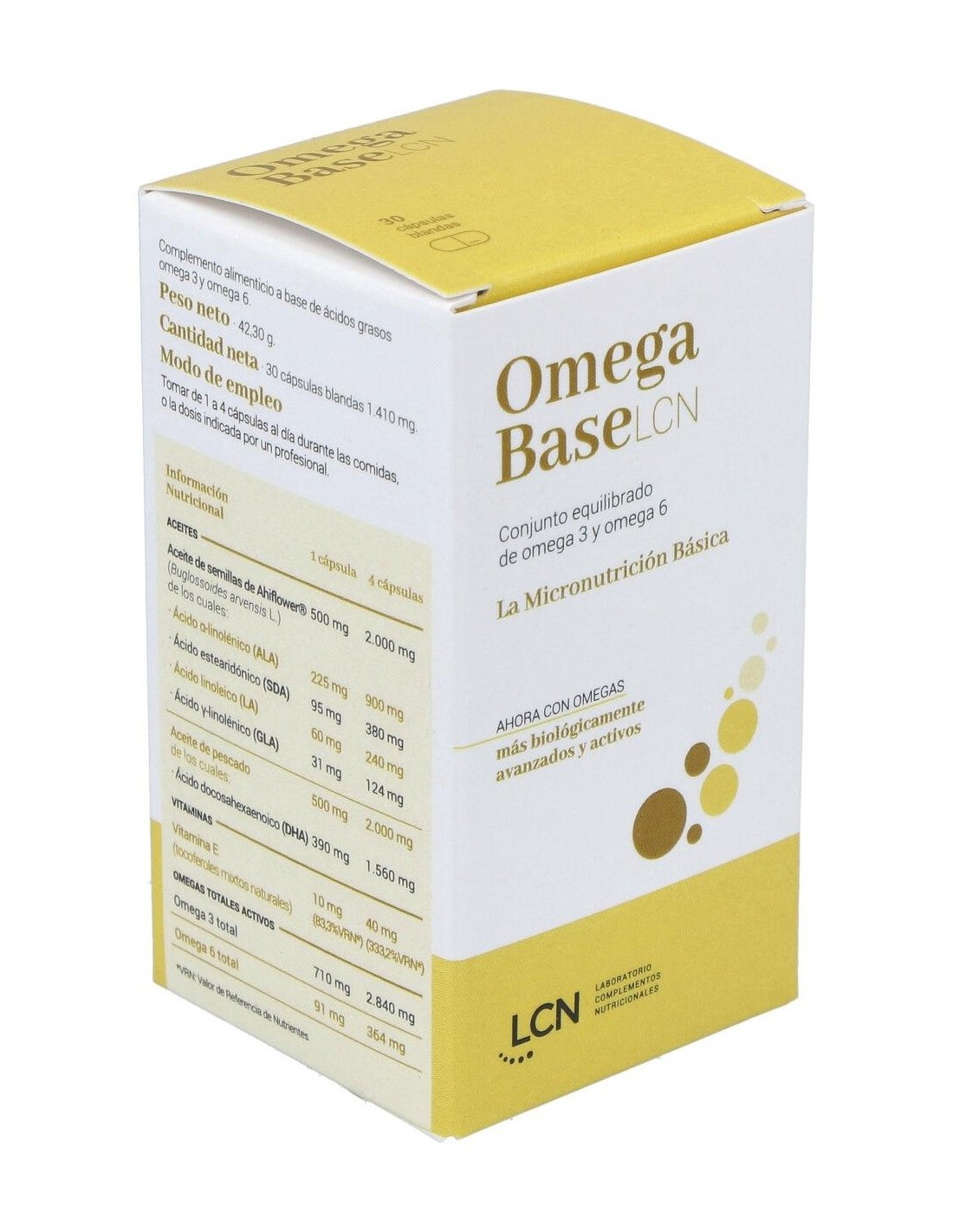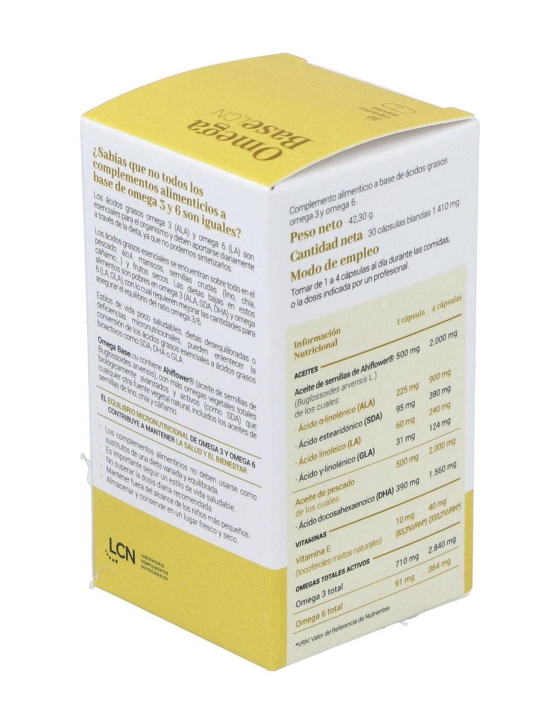 LCNEl equilibrio de omegas en el organismo resulta esencial para el óptimo funcionamiento de los procesos vitales. Omega Base aporta un alto contenido en ácidos grasos poiinsaturados omega 3 y omega 6, en una combinación y proporción que consiguen la mayor actividad biológica.