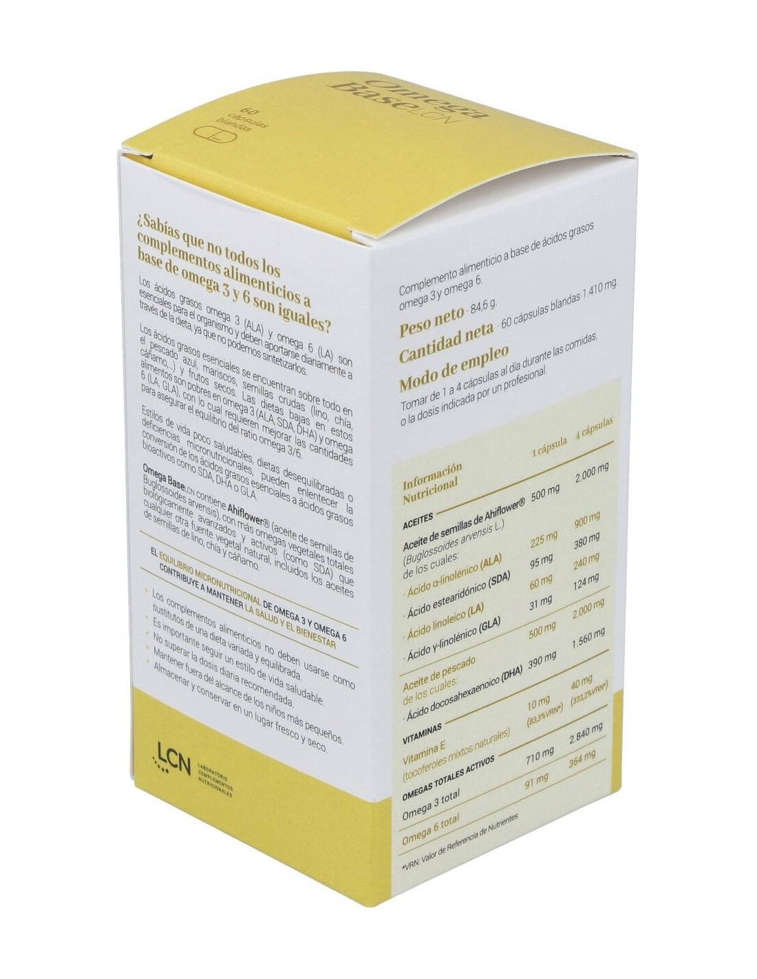 LCNEl Omega Base Lcn 60Cap. de Lcn es un suplemento nutricional para personas que buscan apoyar su bienestar general, formulado con ácidos grasos esenciales que contribuyen al mantenimiento de funciones corporales saludables.
