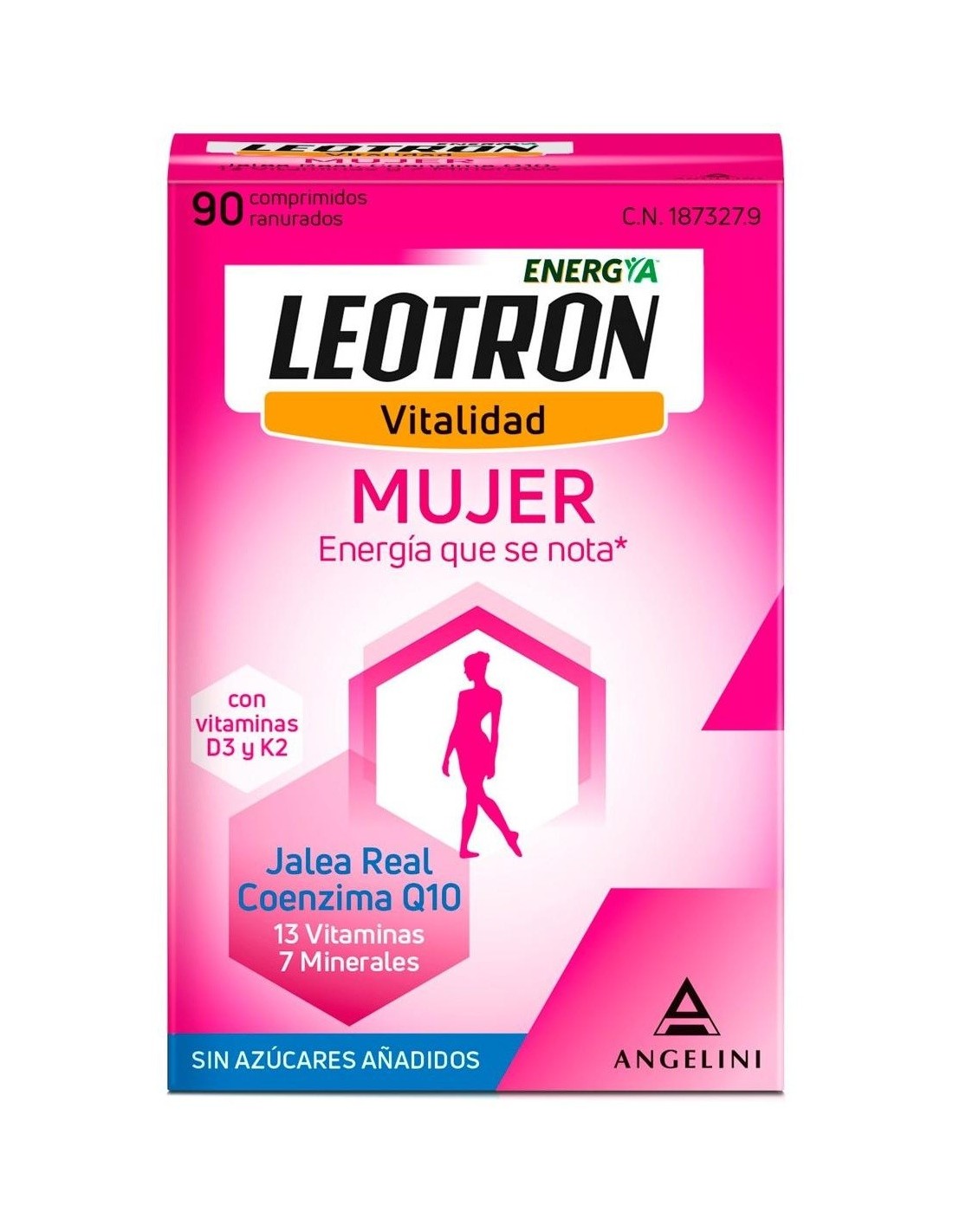 LEOTRONComplemento alimenticio especialmente formulado para la mujer con jalea real, Q10, 13 vitaminas y 7 minerales: Las vitaminas B3, B5, B6, B12, C, el magnesio y el hierro ayudan a disminuir el cansancio y la fatiga. Las vitaminas B2, C y E ayudan a proteger las células frente al daño oxidativo. Para mujeres adultas y adolescentes a partir de 12 años.