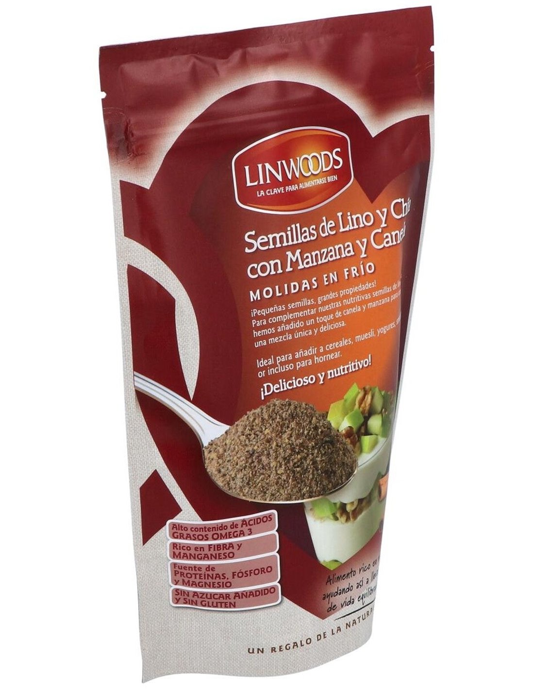 LINWOODSSemillas de Lino y Chía con Manzana y Canela, esta nueva combinación de semillas, frutas y especias es ideal para añadir a cualquier comida del día para hacerla más rica y nutritiva. Todos los grandes beneficios de las semillas de Lino y Chi´a con el aporte sabroso y nutritivo de la manzana y la canela.