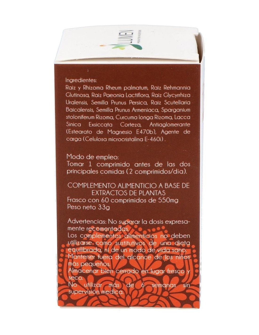 Tomar 1 comprimido con agua (preferiblemente caliente) antes de las 2 comidas principales.