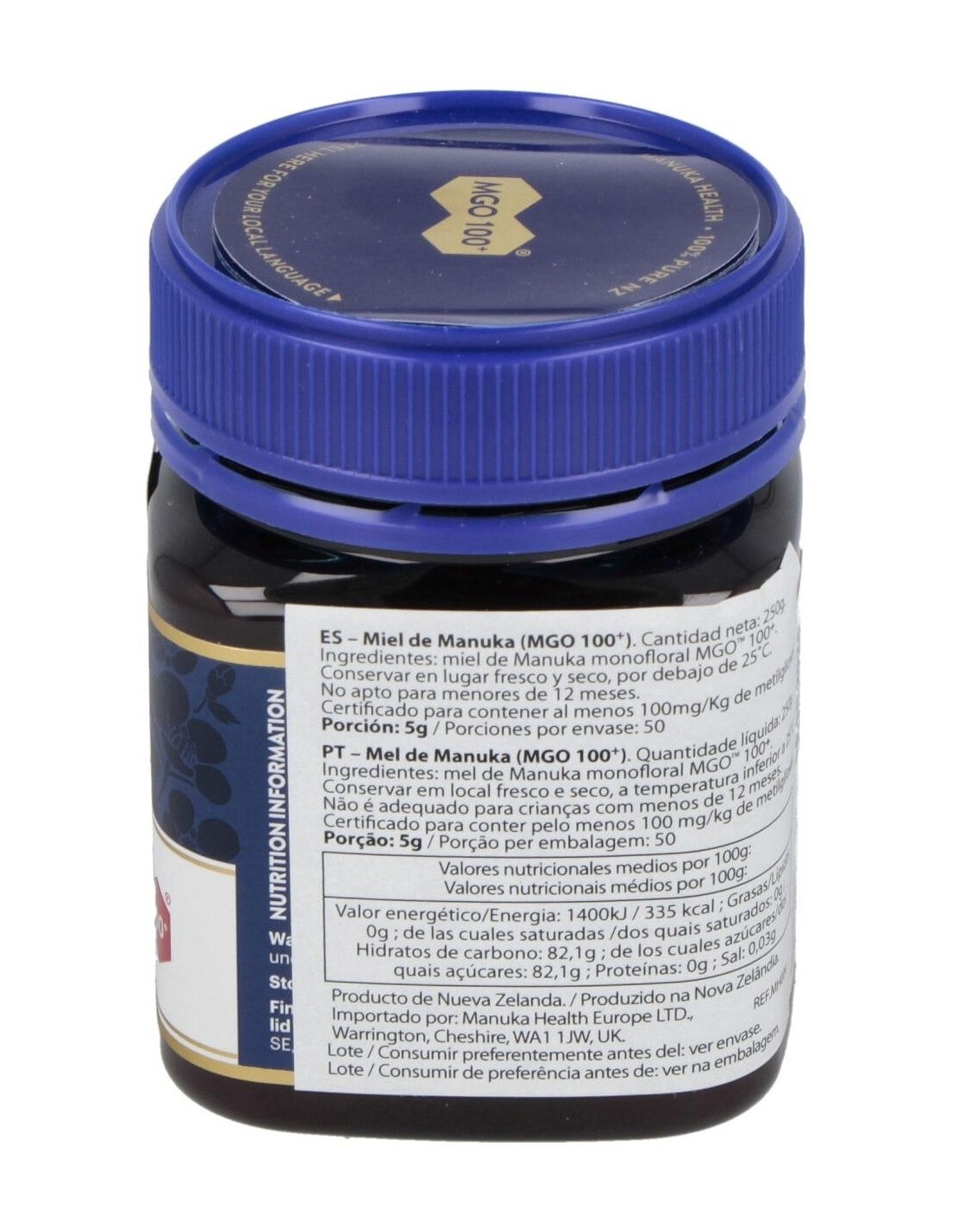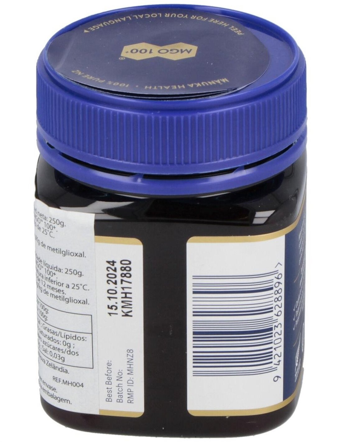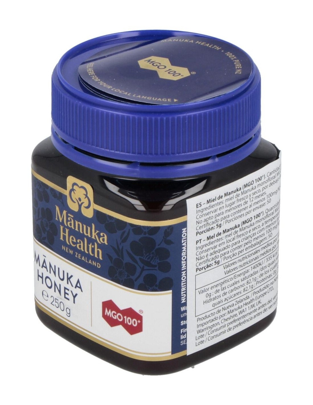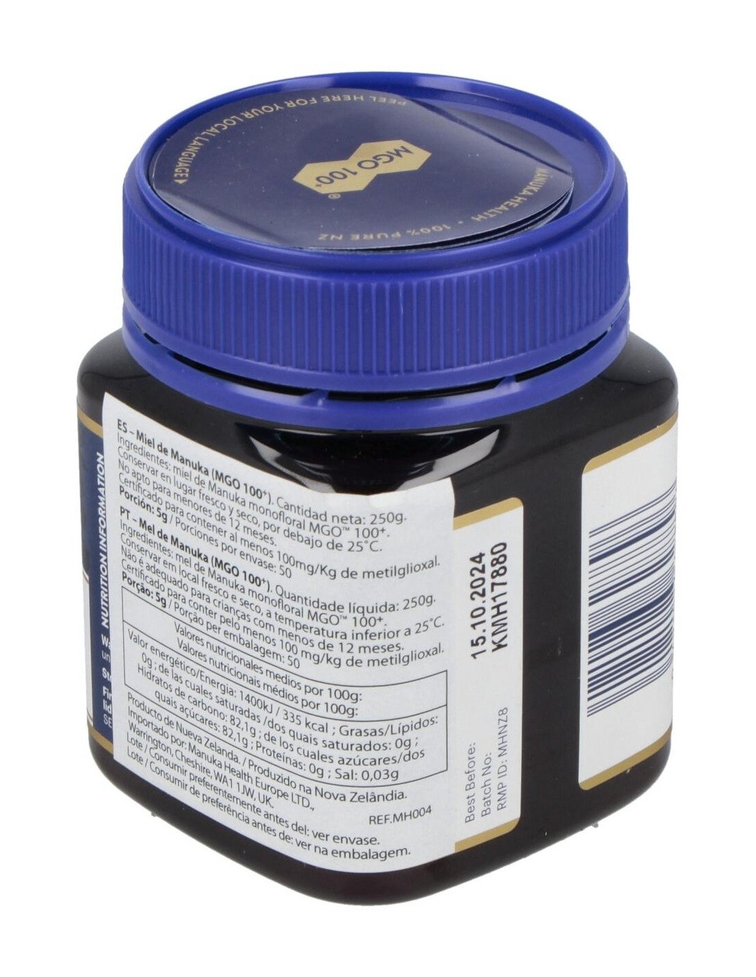 MANUKA HEALTHConcentración Baja. Miel de Manuka Premium de Nueva Zelanda Monofloral MGO 100+ Manuka Honey, certificada por su contenido en Metilglioxal natural (mínimo 100 mg / kg), compuesto natural presente en la miel de Manuka, científicamente probado.