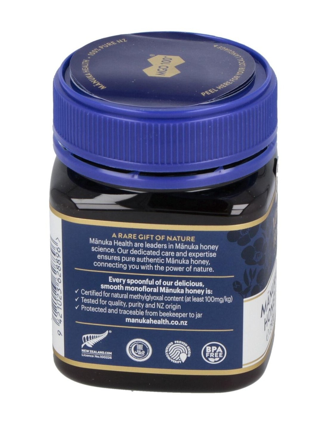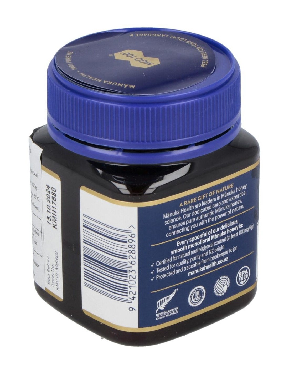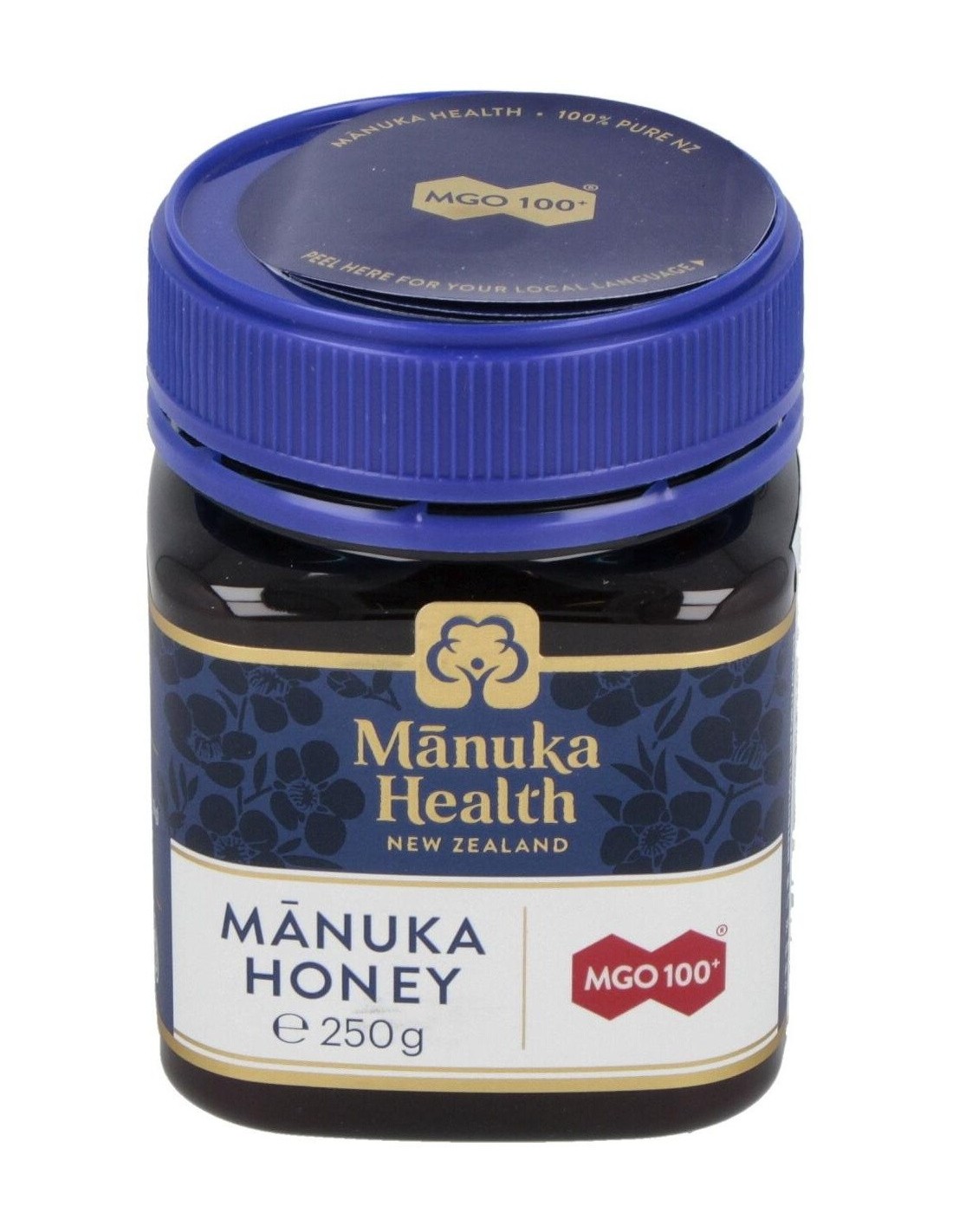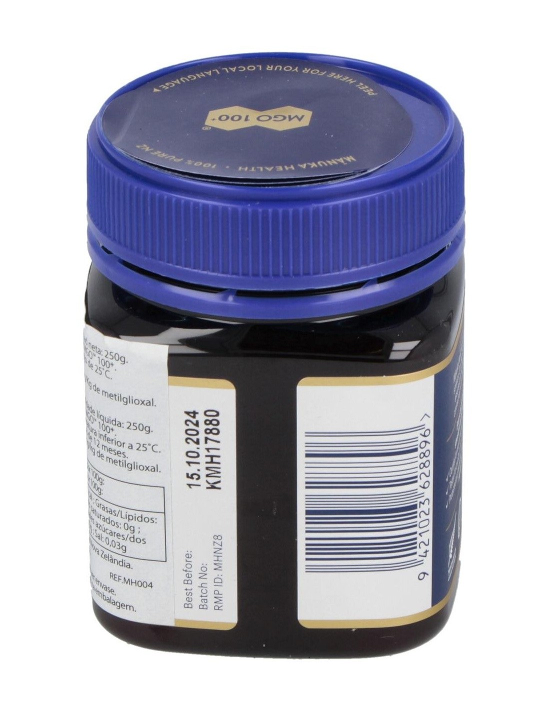 MANUKA HEALTHConcentración Baja. Miel de Manuka Premium de Nueva Zelanda Monofloral MGO 100+ Manuka Honey, certificada por su contenido en Metilglioxal natural (mínimo 100 mg / kg), compuesto natural presente en la miel de Manuka, científicamente probado.