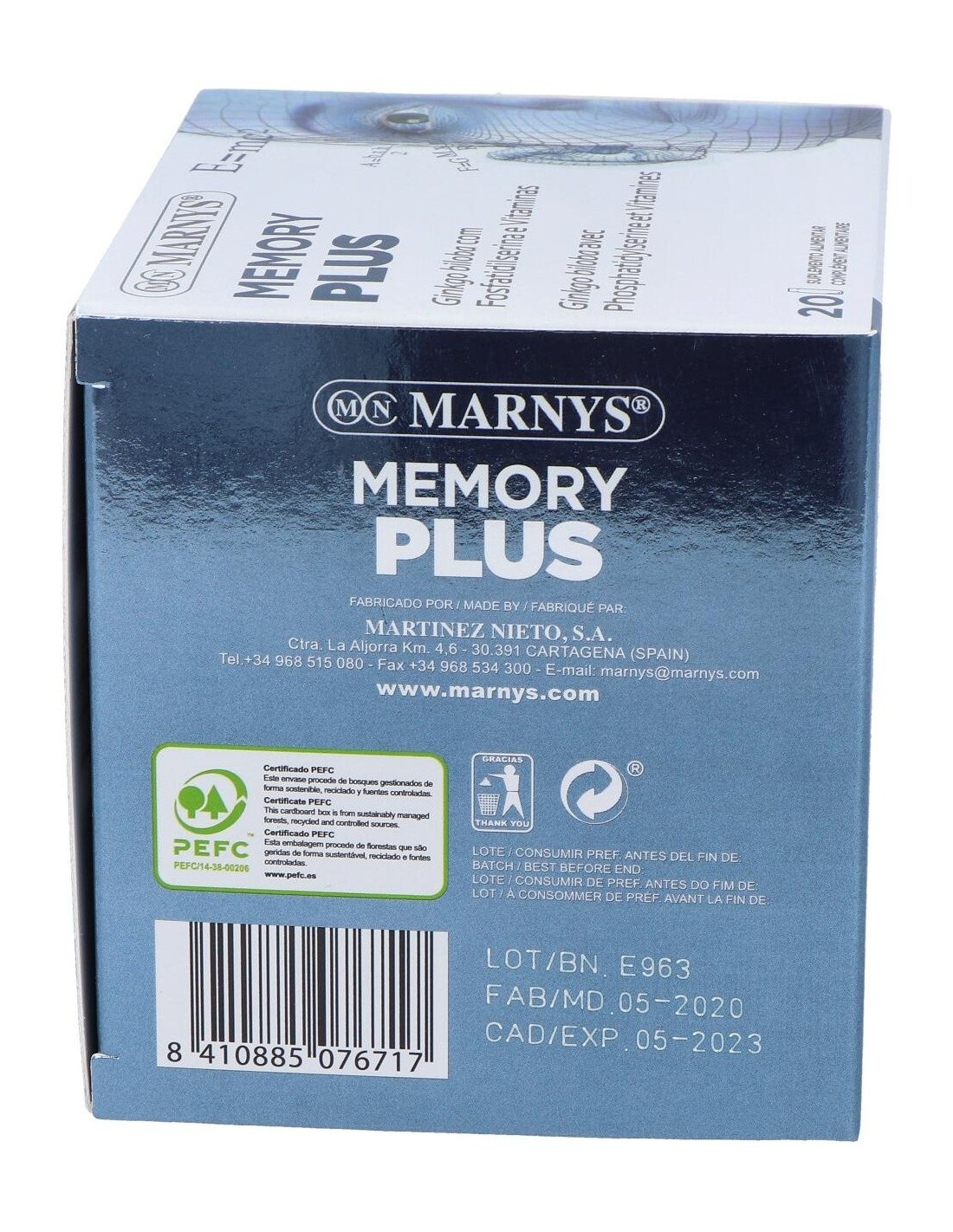 Memory Plus 20Amp. de Marnys es un suplemento diseñado para personas que buscan apoyar su función cognitiva y bienestar mental en su rutina diaria. Su formulación está pensada para quienes desean mantener un equilibrio saludable en sus procesos de concentración y memoria.