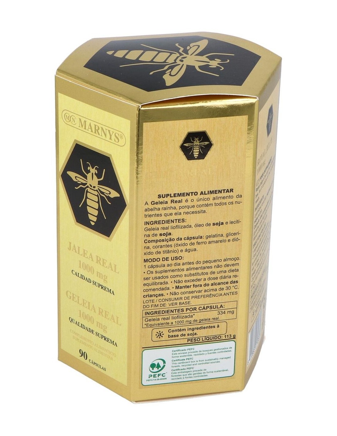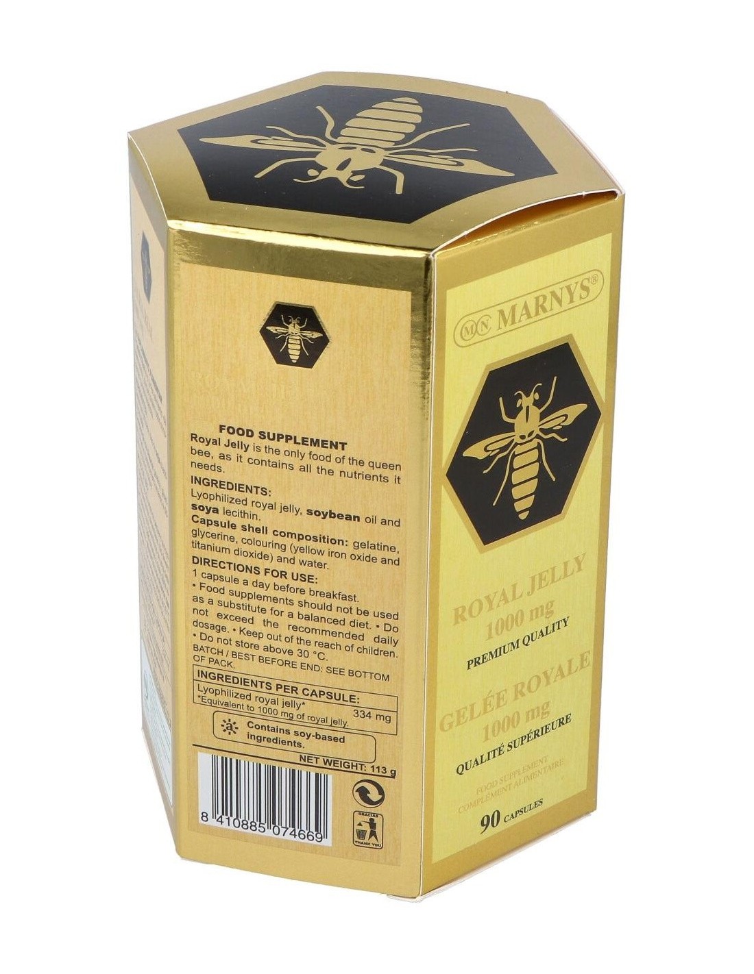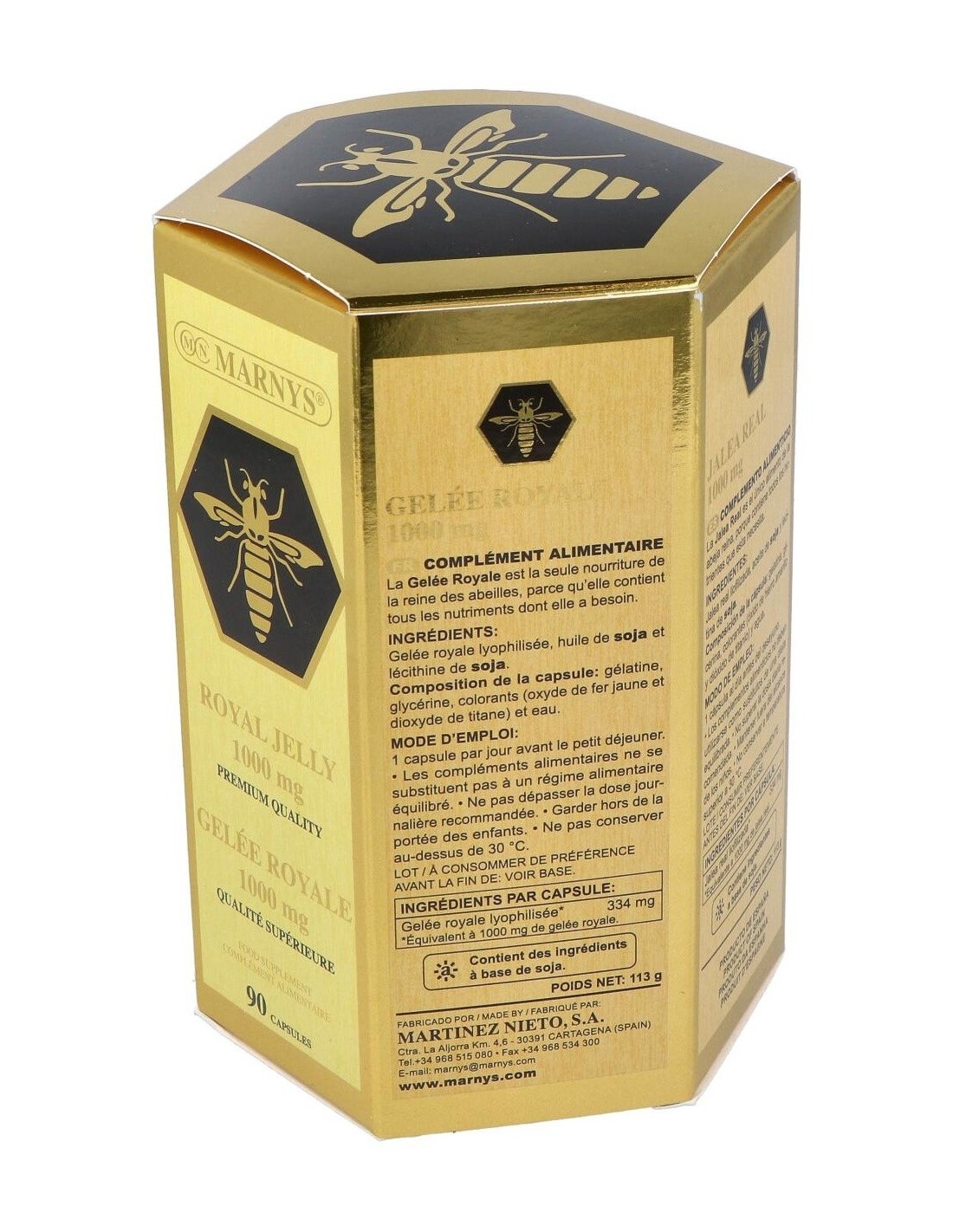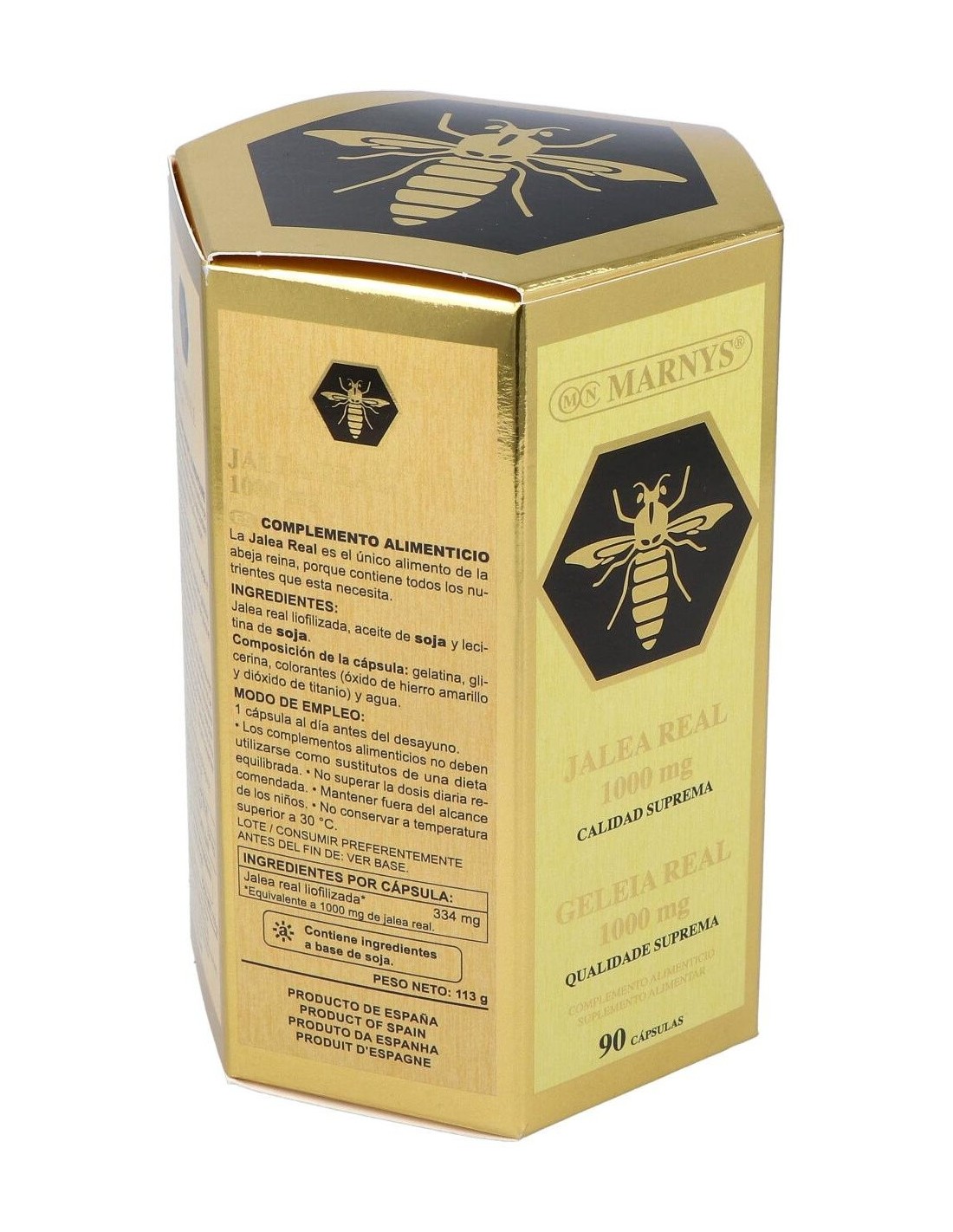 Jalea Real 1000Mg. Lecitina 90Perlas de Marnys es un suplemento diseñado para personas que buscan complementar su dieta con ingredientes naturales que apoyan el bienestar general. Su formulación combina jalea real y lecitina en una presentación práctica de perlas, facilitando su consumo diario.