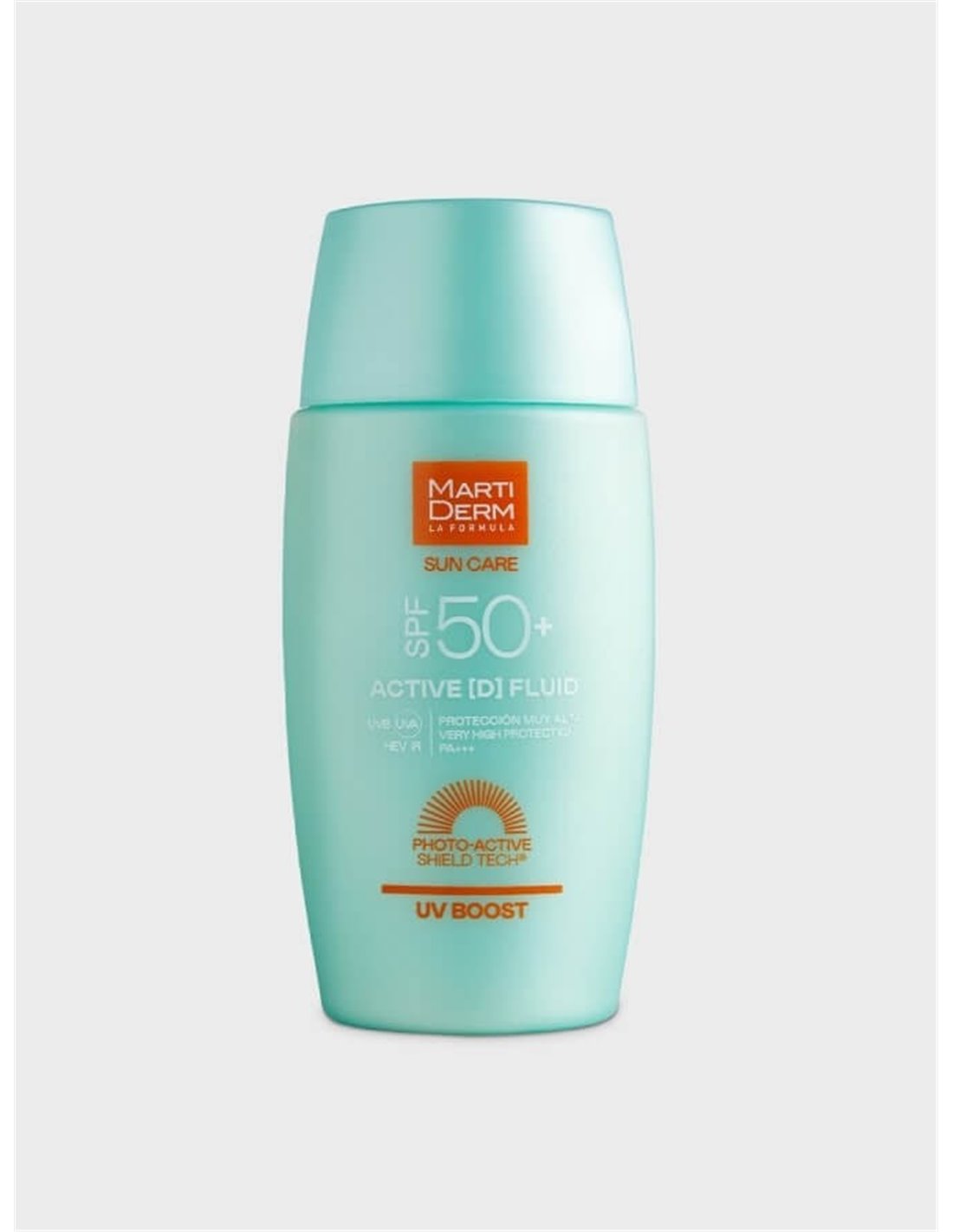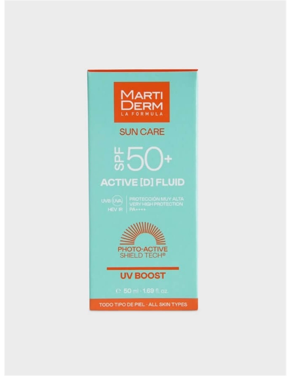 Martiderm Sun Care Active D Fluid SPF50+ 50ml es un fotoprotector facial de muy alta protección que combina el filtro solar SPF50+ con extracto de Achicoria, un activo reestructurante e hidratante.