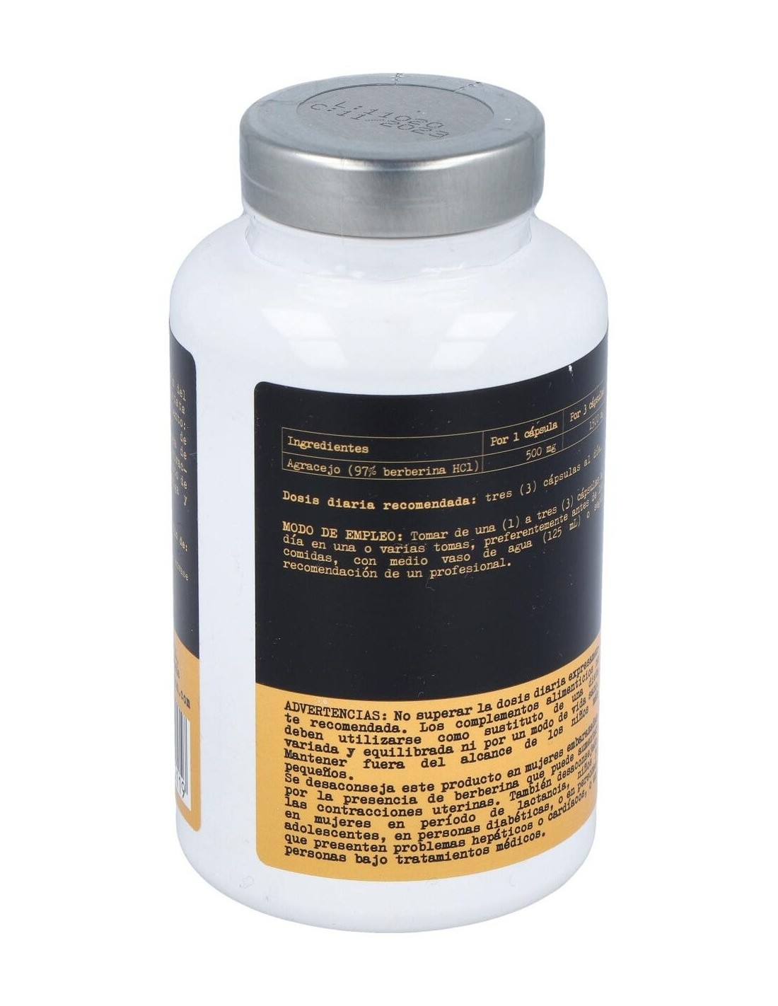 Complemento alimenticio en forma de cápsulas, elaborado a base de extractos secos de berberina, que contribuye a regular el nivel de triglicéridos y colesterol. Ayuda a disminuir también los niveles de testosterona, a reducir la producción de glucosa en sangre, y gracias a sus propiedades antiinflamatorias, contribuye a mejorar los problemas articulares.Usado para completar una dieta sana y un estilo de vida saludable, puede contribuir a la pérdida de peso.