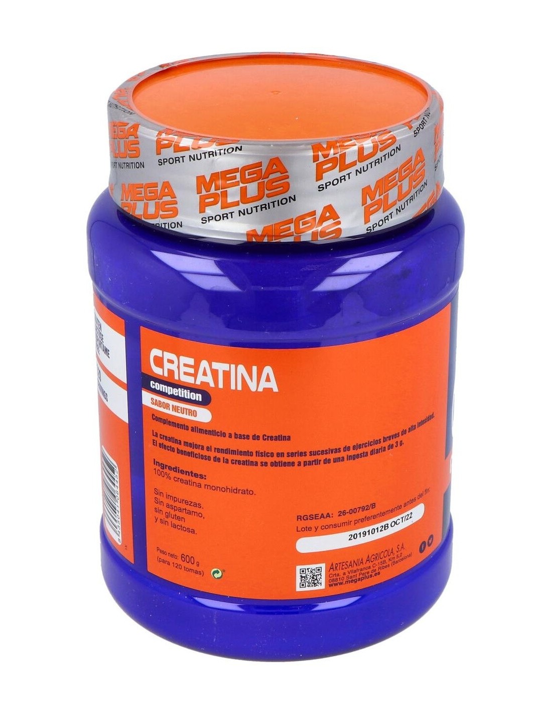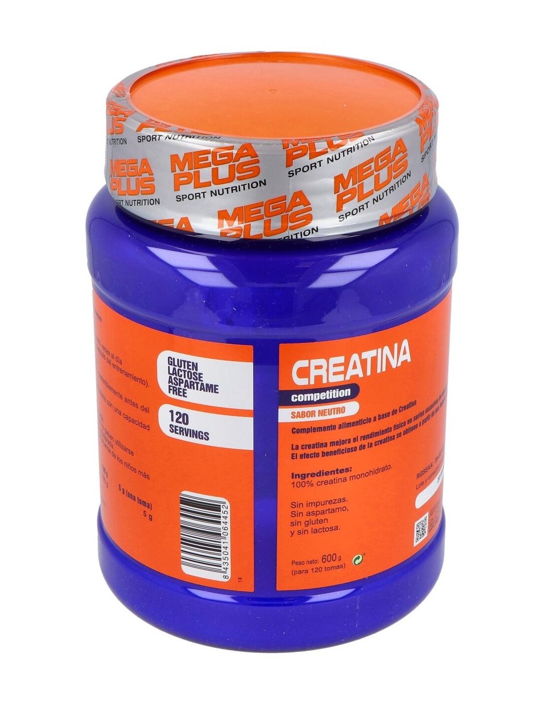 MEGA PLUSLa Creatina Competition 600Gr. de Mega Plus es un suplemento para deportistas que apoya la recuperación y el rendimiento muscular mediante una fórmula pura de creatina monohidratada.
