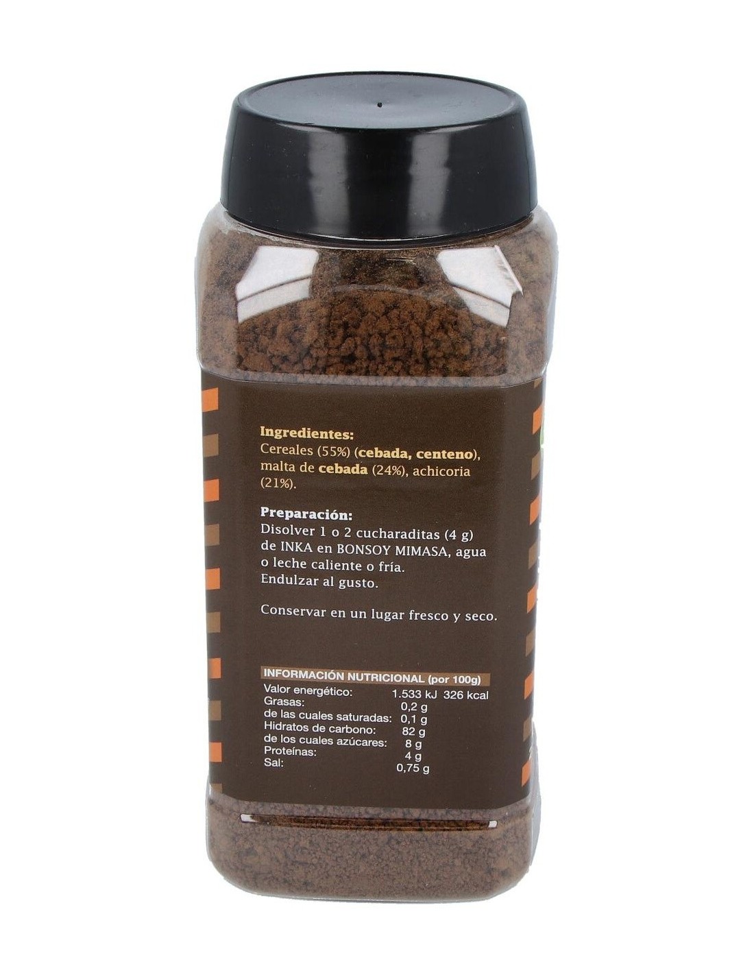 MIMASAEl Inka Café de Cereales 200Gr. de Mimasa es una bebida instantánea para consumidores que buscan una alternativa sin cafeína. Ofrece un sabor suave y nutritivo gracias a su mezcla de cereales tostados.