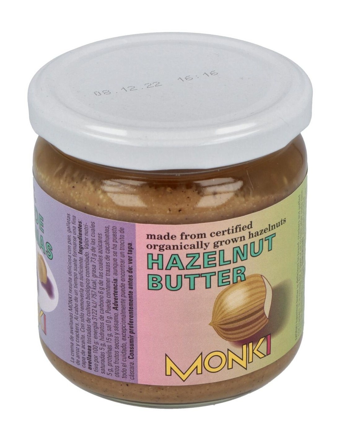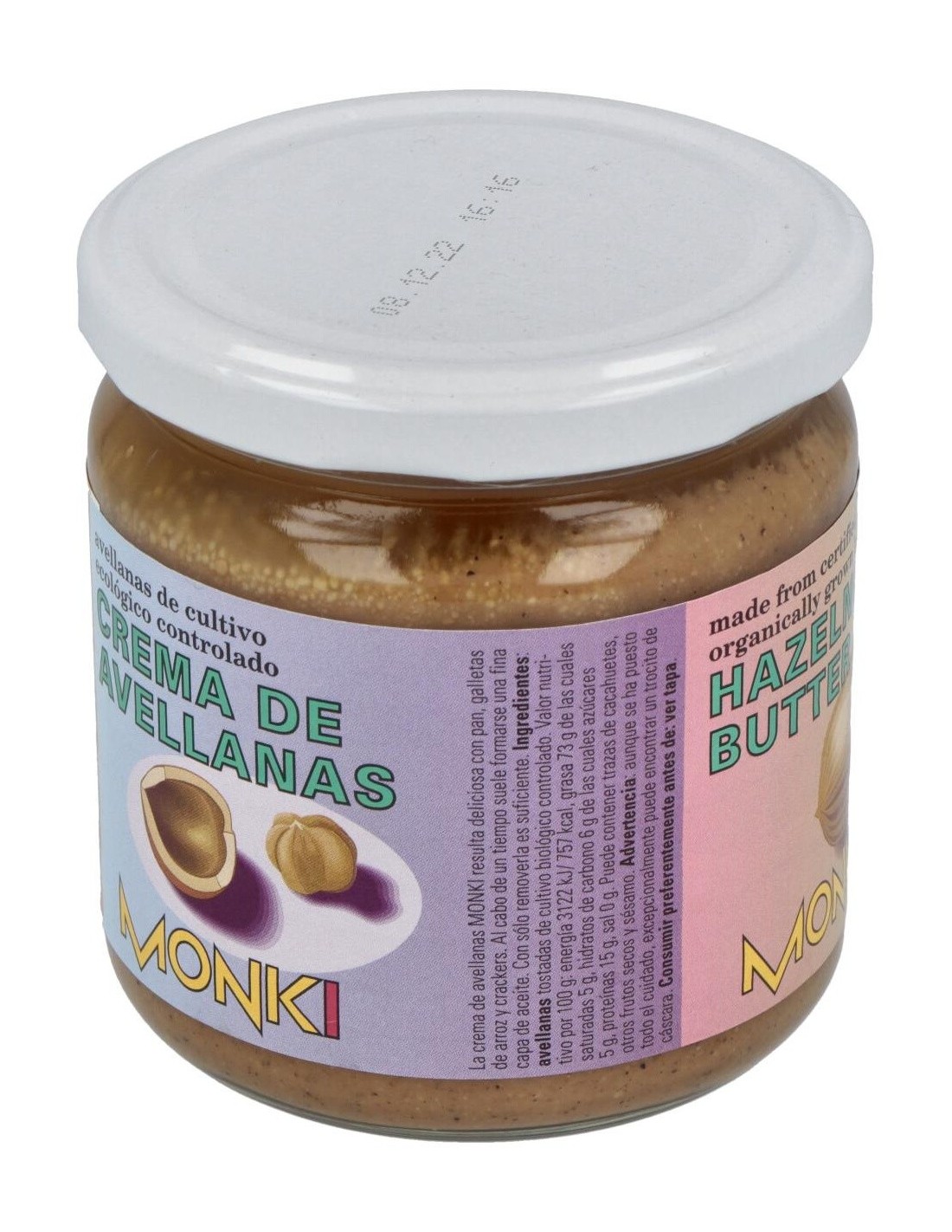 MONKIIngredientes:Avellanas tostadas*. (*) Ingrediente procedente cultivo ecológico controlado.Valor nutricional por 100 gramos: