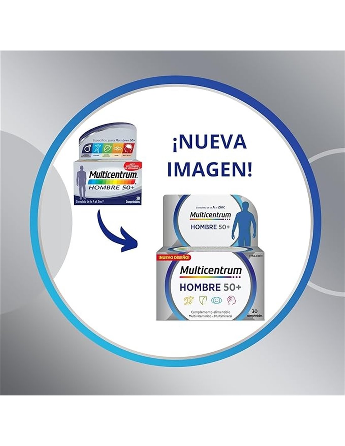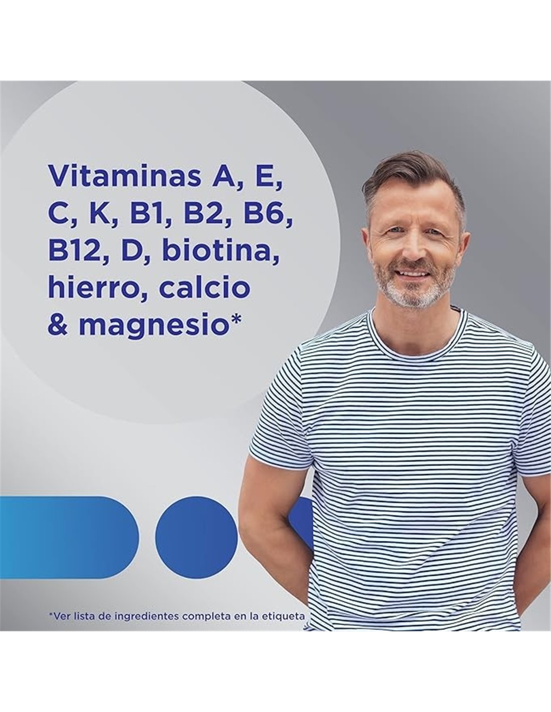 Producto con 13 vitaminas y 11 minerales pensados para hombres a partir de 50 años. Fórmula mejorada con alto contenido en vitamina D, que ayuda al mantenimiento de los huesos en condiciones normales. Presenta ácido pantoténico que ayuda en el rendimiento intelectual normal, y a base de zinc y hierro, contribuyendo en las funciones cognitivas normales.