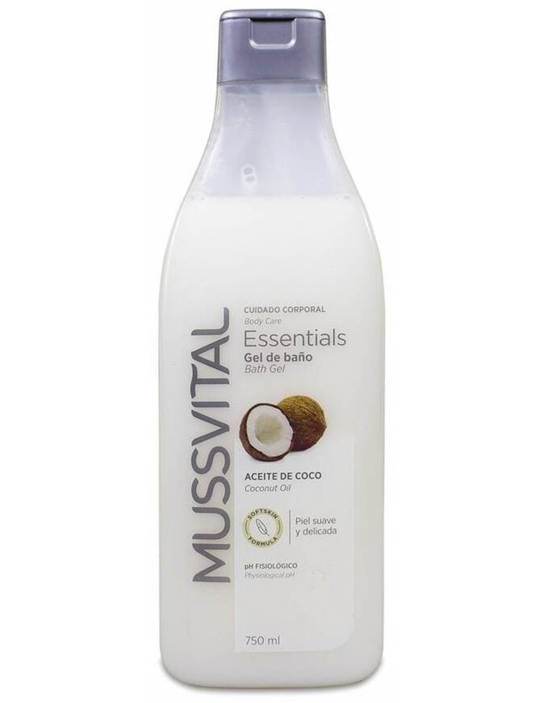 MUSSVITALMussvital Gel de Baño Aceite de Coco es una fórmula específica para la higiene diaria de la piel. Contiene el SOFTSKIN COMPLEX, combinación de activos dermoprotectores que limpian la piel con suavidad, manteniéndola en un óptimo estado. Aceite de Coco: Hidrata y humecta la piel, aumenta el contenido lipídico cutáneo.