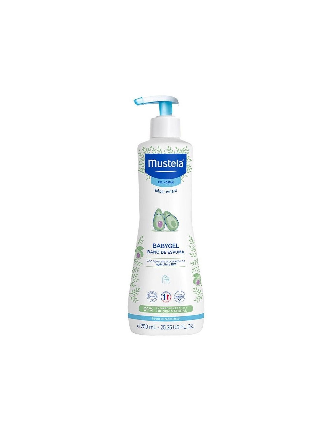 MUSTELANuestro gel de baño de espuma Babygel limpia con suavidad y sin resecar el cuerpo y cabello de los niños. La fórmula de nuestro gel espumoso de origen