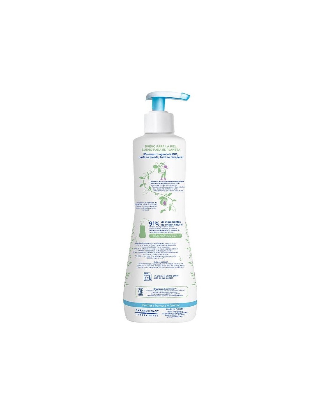 Nuestro gel de baño de espuma Babygel limpia con suavidad y sin resecar el cuerpo y cabello de los niños. La fórmula de nuestro gel espumoso de origen natural y alta tolerancia con aguacate Bio se puede usar incluso en recién nacidos.Gracias a la espuma suave y ligera de este gel para bebés, el baño se convierte en un momento de diversión y despertar. Limpia suavemente el cuerpo y el cabello del bebé. Su espuma, su color y olor único contribuyen al desarrollo sensorial y al bienestar del bebé.La magia de este jabón de bebé se basa en nuestro ingrediente activo clave el Perseose de aguacate® (obtenido de aguacates Bio) especialmente seleccionado por sus propiedades: refuerza la barrera cutánea y protege el capital celular de la piel de los bebés.Ingredientes (INCI):Aqua/Water/Eau, Sodium Myreth Sulfate, Glycerin, Cocamidopropyl Betaine, Peg-7 Glyceryl Cocoate, Coco-Glucoside, Peg-150 Distearate, Parfum (Fragrance), Propylene Glycol, Glyceryl Caprylate, Maris Sal /Sea Salt/Sel Marin, Citric Acid, Centaurea Cyanus Flower Extract, Potassium Sorbate, Persea Gratissima (Avocado) Fruit Extract, Ci 42090 (Blue 1).91% de ingredientes de origen natural. El 9% restante son ingredientes para garantizar una textura agradable y una buena protección a largo plazo de la fórmula.Modo de empleo:
