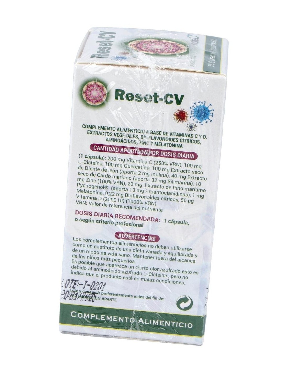 Vitamina C (Ácido L-Ascórbico) (procede de PUREWAY R®), Agente de recubrimiento (Hidroxipropilmetilcelulosa), L-Cisteína, Quercetina, Extracto seco de Diente de león (Taraxacum officinale, 2% Inulina), Agente de carga (Celulosa microcristalina), Extracto seco de Cardo mariano (Silybum marianum, 80% Silimarina), Citrato de zinc, Almidón de maíz, Extracto de Pino marítimo Pycnogenol® (Pinus pinaster, 65% Proantocianidinas), Antiaglomerante: Estearato de Magnesio, Melatonina, Bioflavonoides cítricos (procede de PUREWAY R®) y Vitamina D (Colecalciferol).