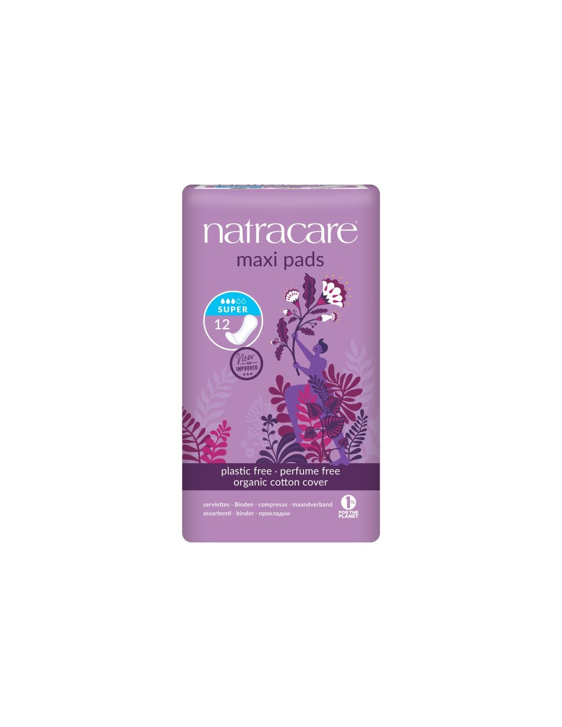 Compresas para la menstruación muy absorbentes y finas con una absorbencia adecuada para menstruaciones prolongadas o protección nocturna. Sin alas. No contienen materiales plásticos, cloro, rayón, látex, aditivos químicos, fragancias ni tintes.