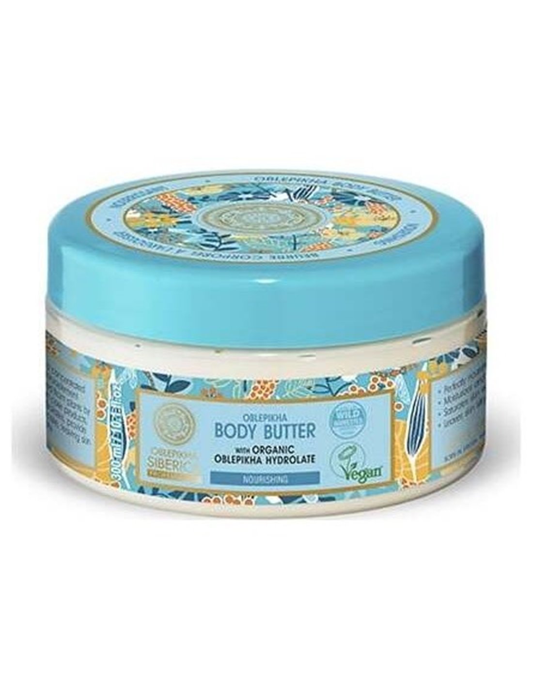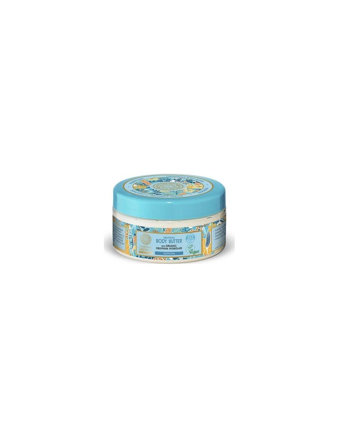 NATURA SIBERICACon una textura rica y fundente, esta manteca corporal a base de hidrolato de espino amarillo orgánico proporciona nutrición, hidratación y un cuidado óptimo para la piel seca o deshidratada. Renueva la piel dejándola suave y sedosa. El aceite de espino amarillo de Altái orgánico nutre en profundidad, repara e hidrata la piel.\ Los extractos de pino enano siberiano y de serba siberiana silvestre le aportan ácidos grasos esenciales necesarios para su nutrición. Producto vegano.