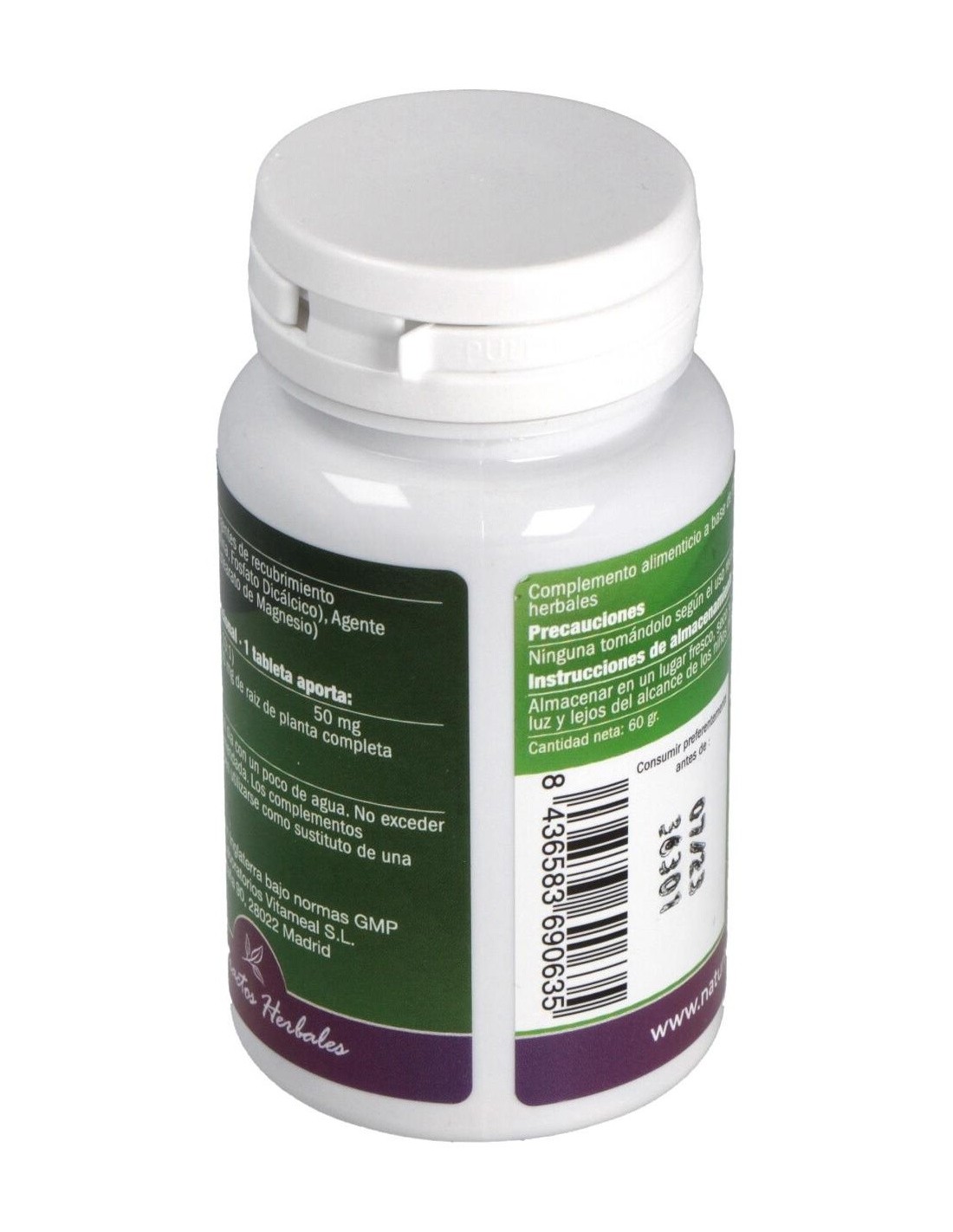 Maca (extracto 10:1) 50 mg proporcionando 500 mg. Celulosa, Fosfato Dicálcico, Estearato de Magnesio.