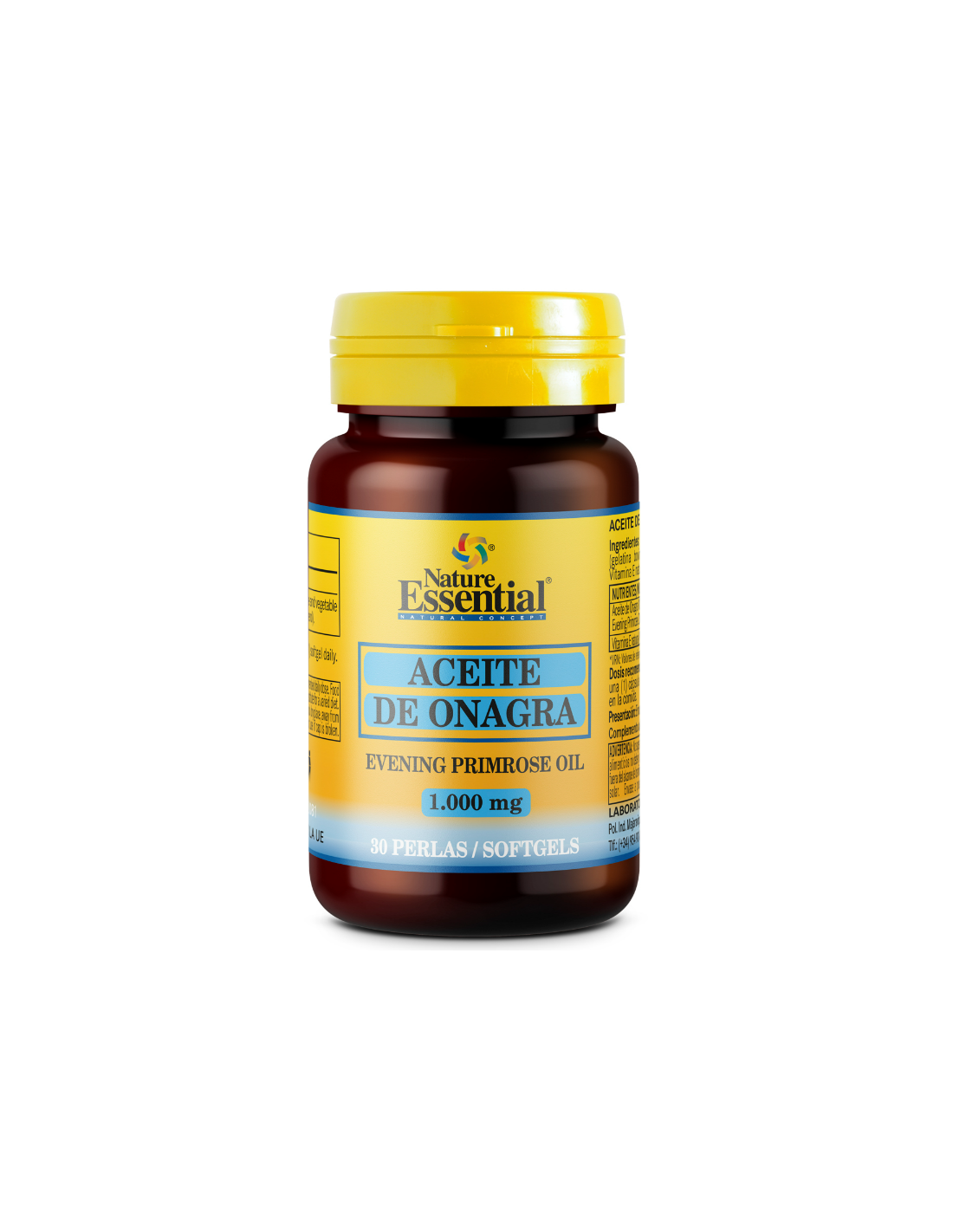 NATURE ESSENTIALEl Aceite De Onagra 1000Mg (10% GLA) 30 Perlas de Nature Essential es un suplemento natural para personas que buscan apoyar el bienestar hormonal y la salud de la piel, gracias a su concentración de ácido gamma-linolénico.