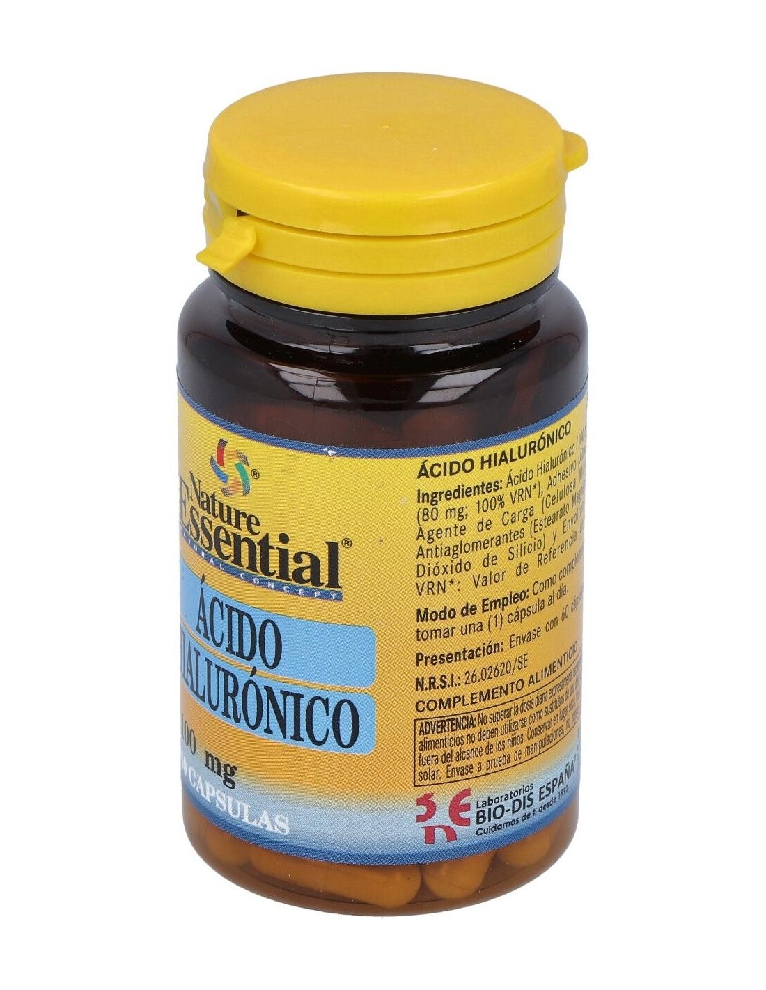 NATURE ESSENTIALComplemento alimenticio a base de ácido hialurónico. contribuye a aumentar el volumen de la piel, el cual tiende a disminuir considerablemente con el paso de los años, lo que permite la formación de arrugas.