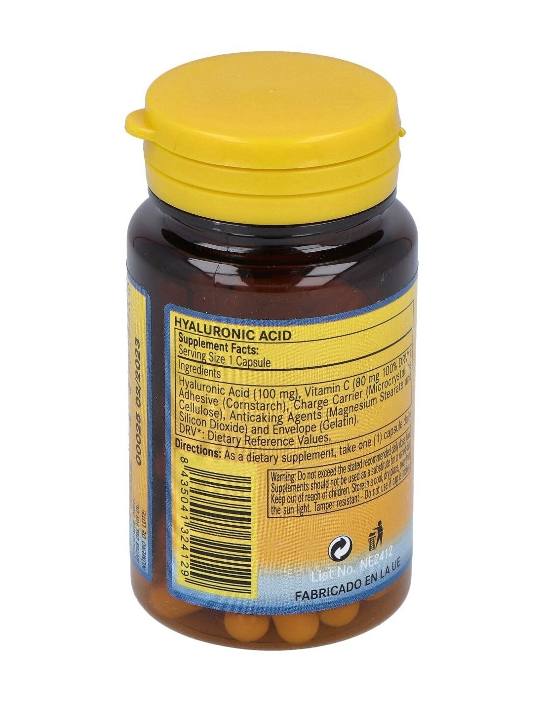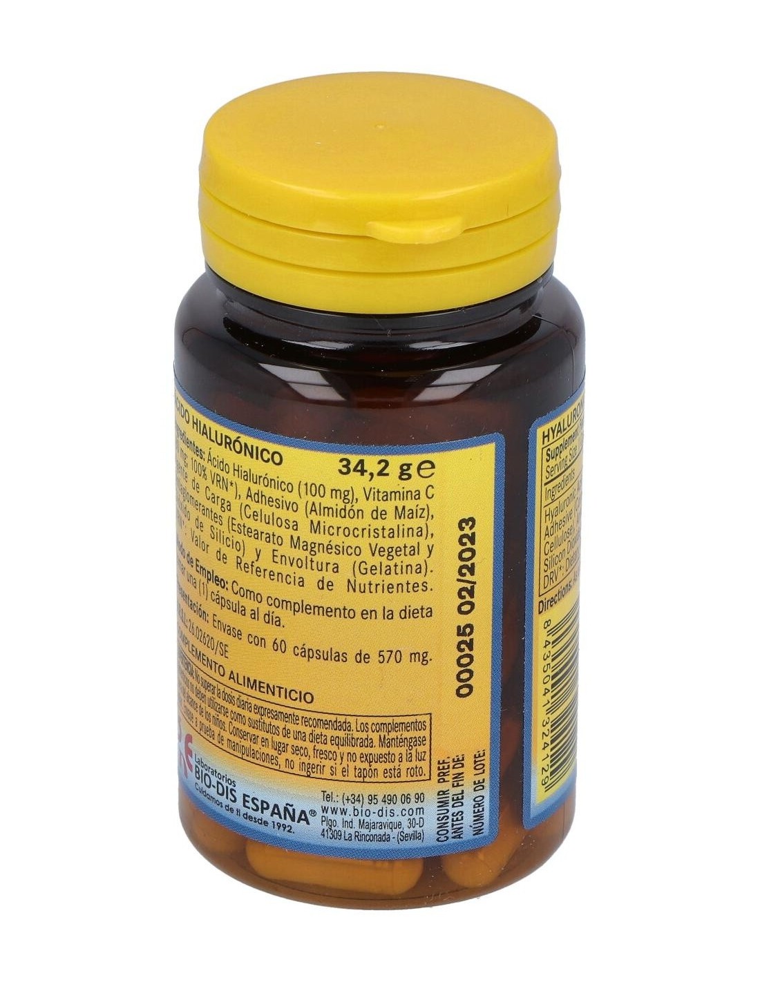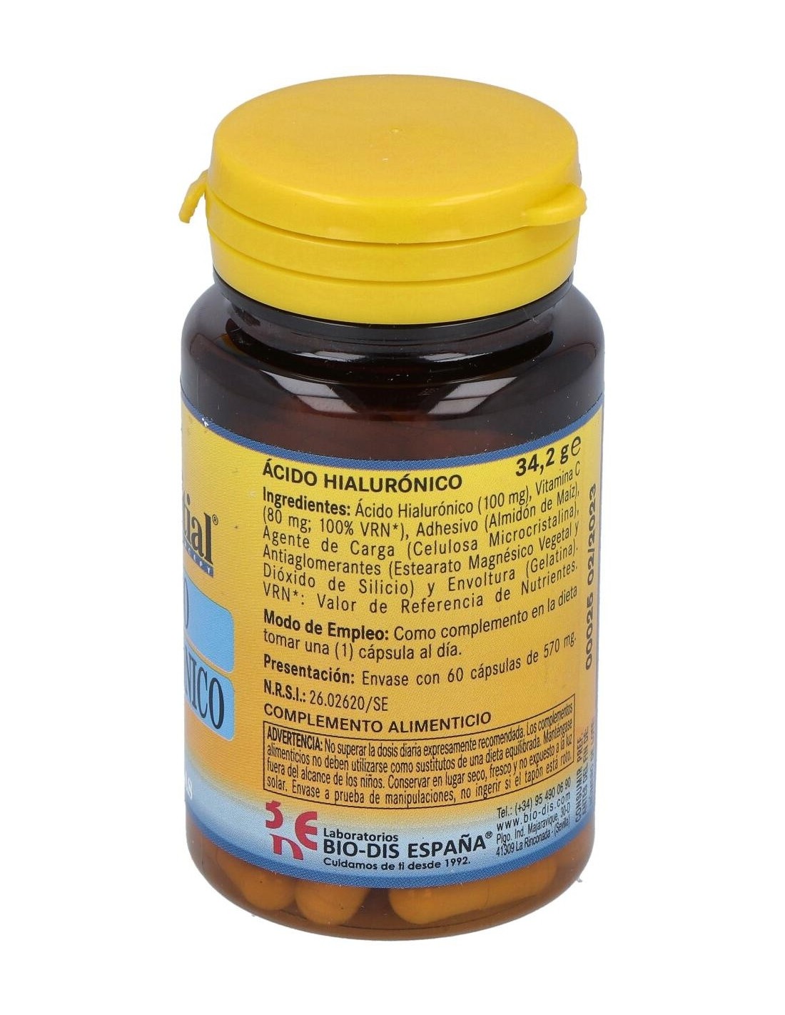 Complemento alimenticio a base de ácido hialurónico. contribuye a aumentar el volumen de la piel, el cual tiende a disminuir considerablemente con el paso de los años, lo que permite la formación de arrugas. Este elemento revitaliza, fortalece e hidrata dicho tejido cutáneo.