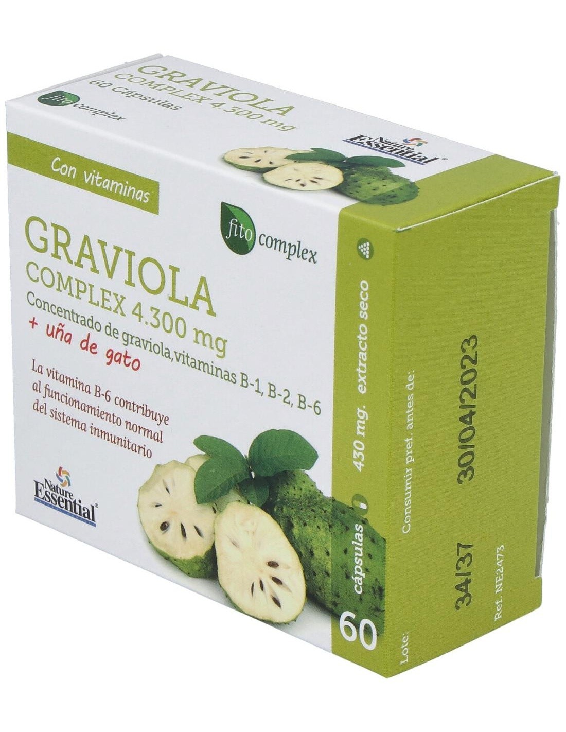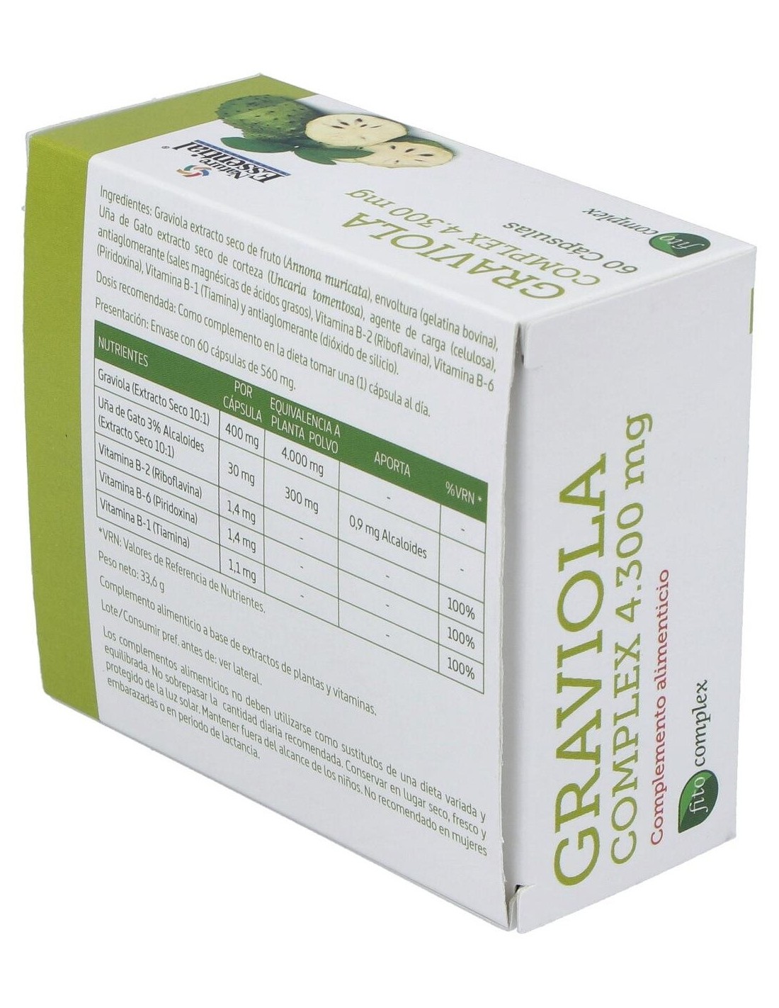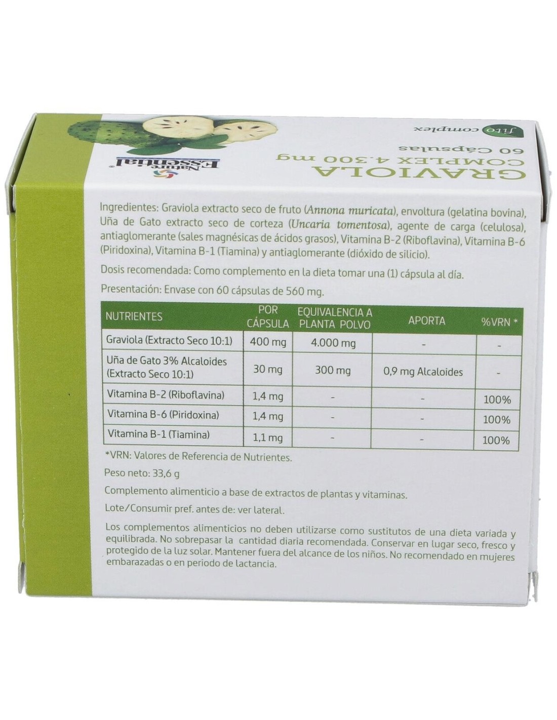NATURE ESSENTIALConcentrado de graviola y vitaminas B1, B2 y B6 que contribuyen a un buen funcionamiento del sistema inmunitario. No recomendado en mujeres embarazadas o en periodo de lactancia.