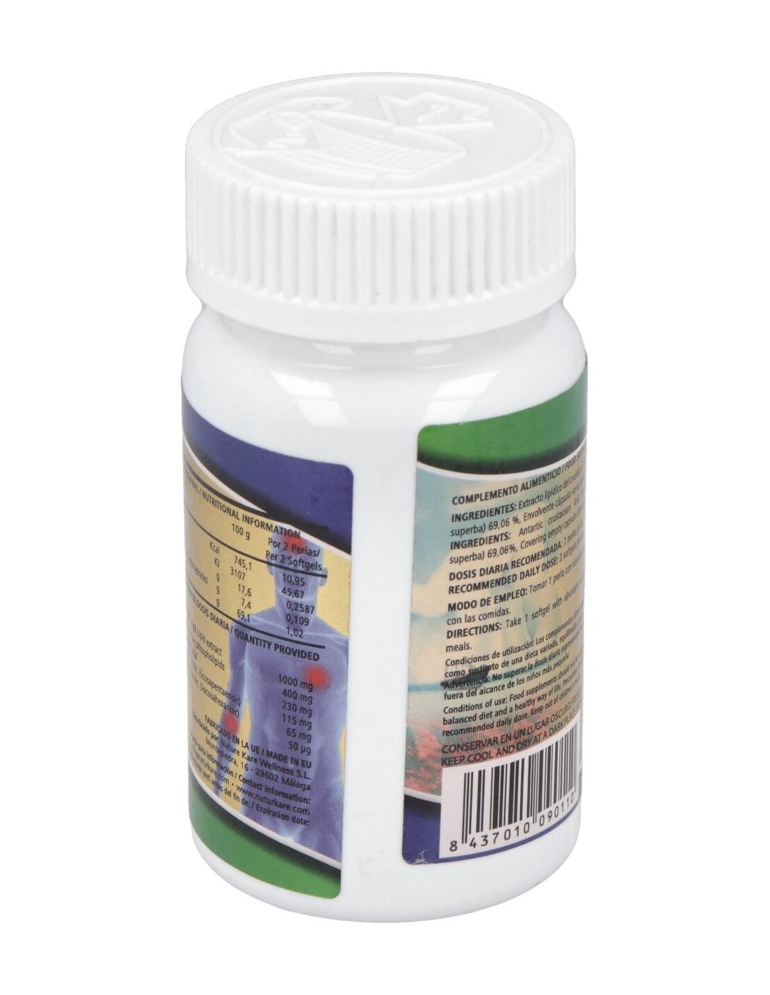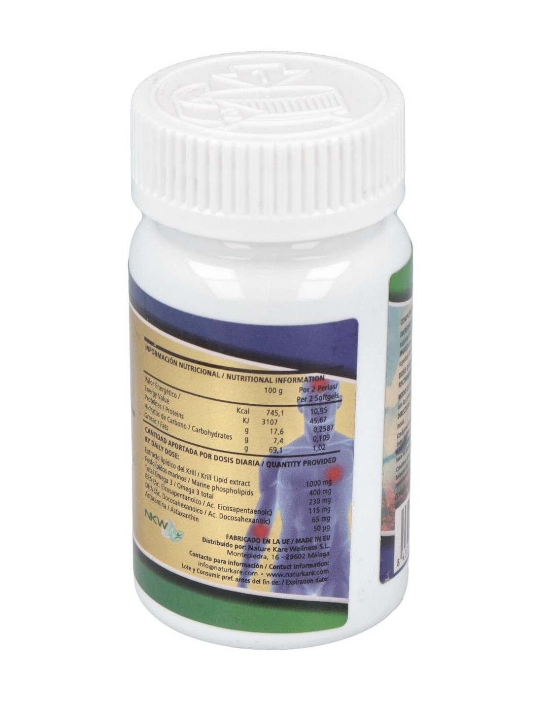 Extracto lipídico del crustáceo krill antártico 69,06%, envolvente cápsula vacía (gelatina, glicerol).