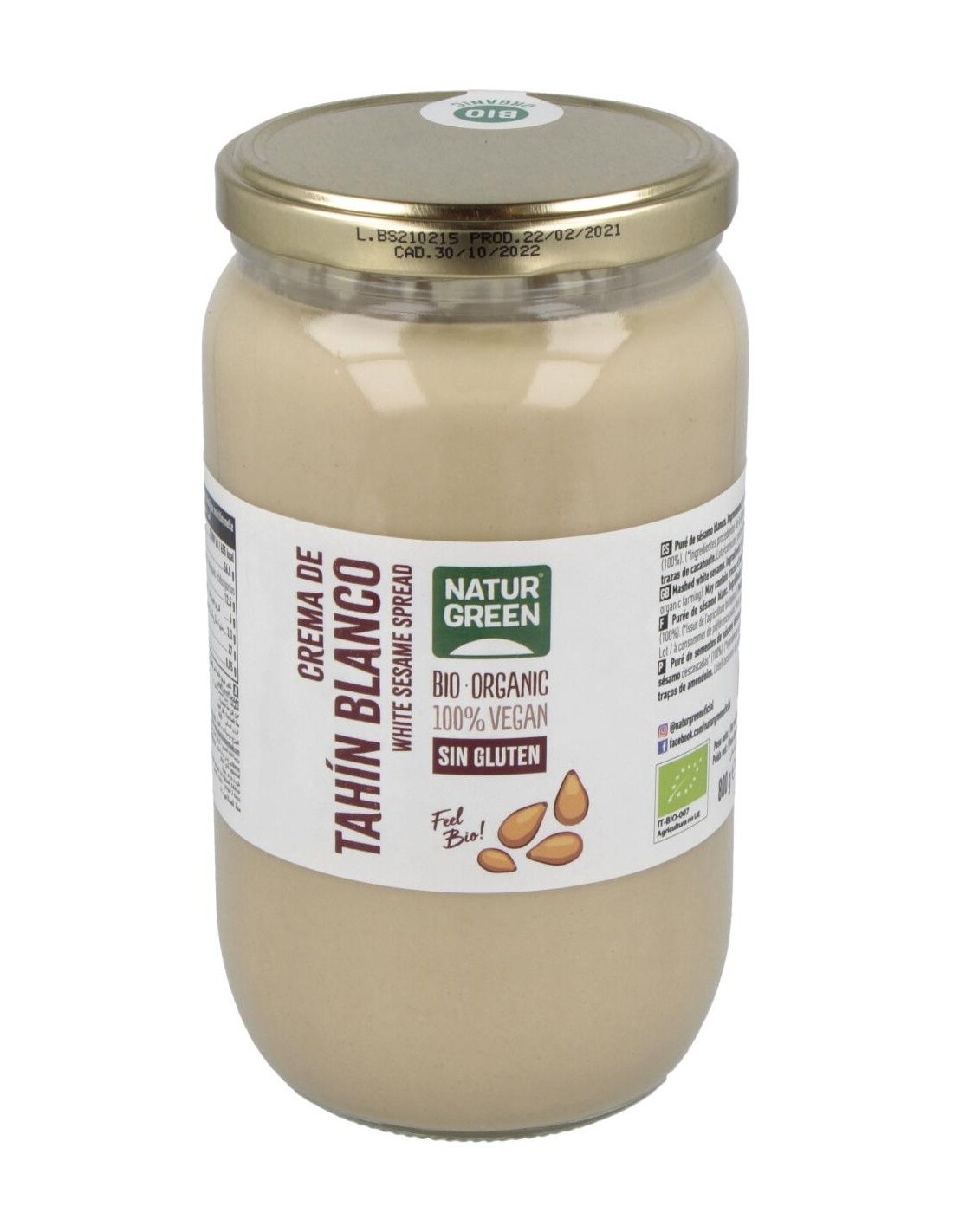 NATURGREENNaturgreen Tahín Ecológico De Sésamo 800 G es una crema vegetal para untar o cocinar, elaborada puramente de semillas de sésamo crudo. También se le denomina puré de sésamo.