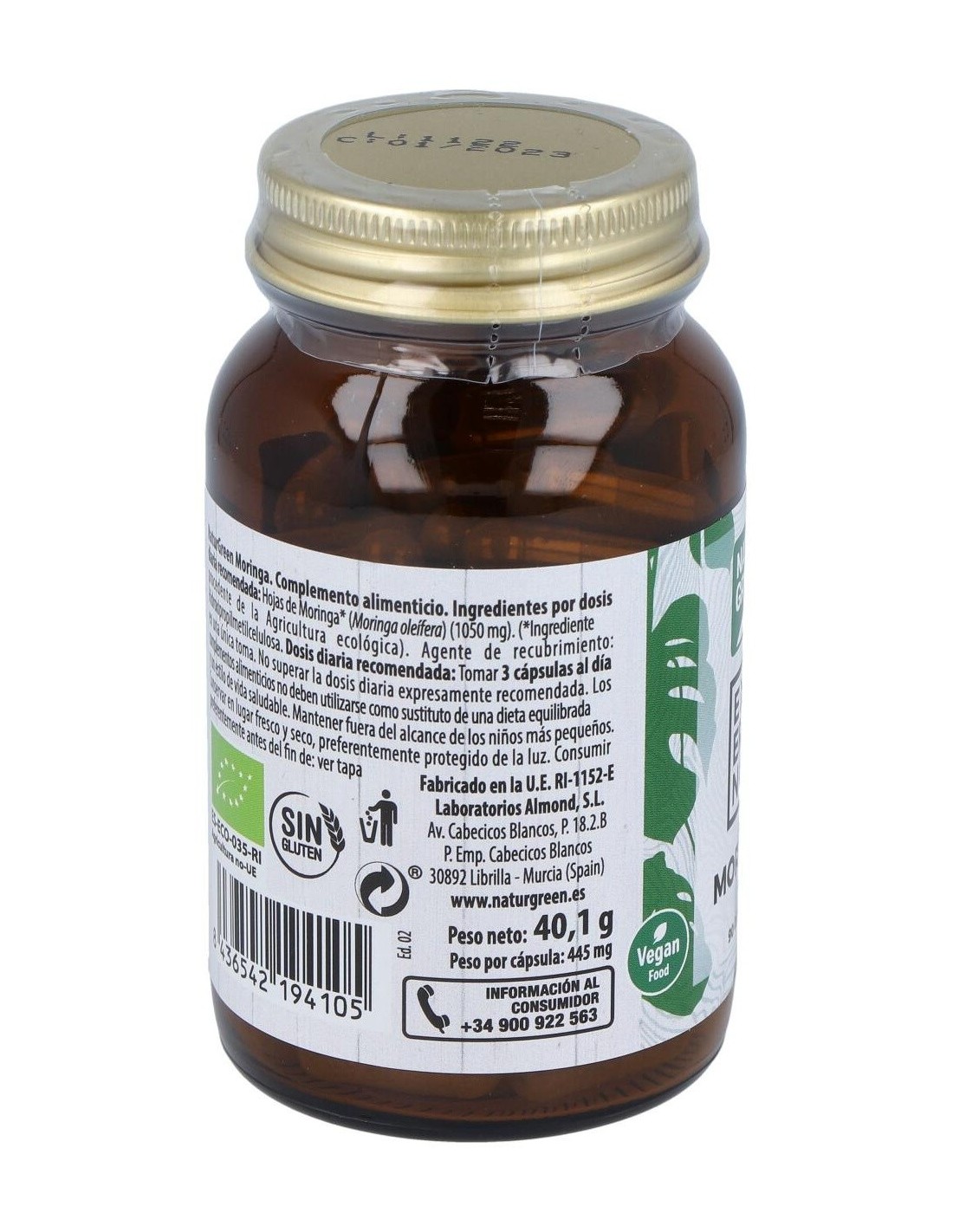- Contiene extracto de moringa procedente de cultivo ecológico, que aporta nutrientes esenciales de forma natural.