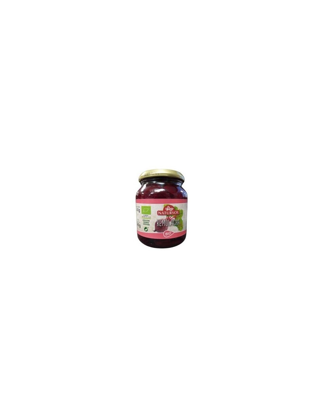 Remolacha*, agua, vinagre*, sirope de agave*, sal marina, cebolla en polvo*, pimienta negra* Valor nutricional por 100 g: Energía: 154kJ/37Kcal Grasas: 0,1g de las cuales saturadas: 0,1g Hidratos de carbono: 6,6g de los cuales azúcares: 6,4g Fibra: 2,2g Proteínas: 1,2g Sal: 0,5 g (*)=De producción ecológica certificada.