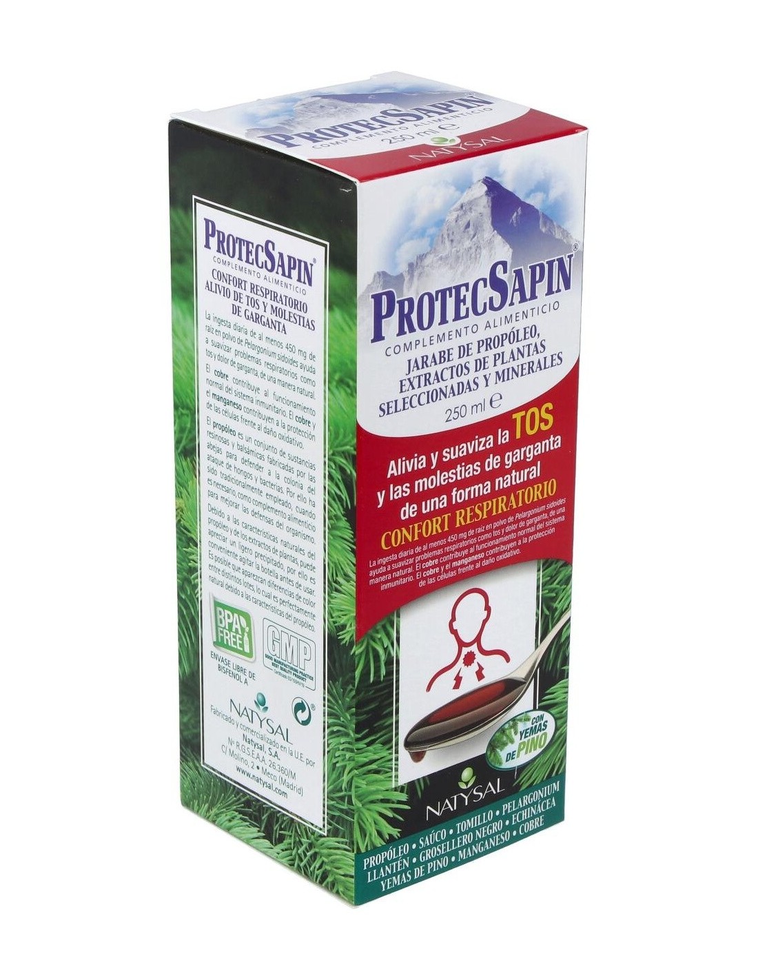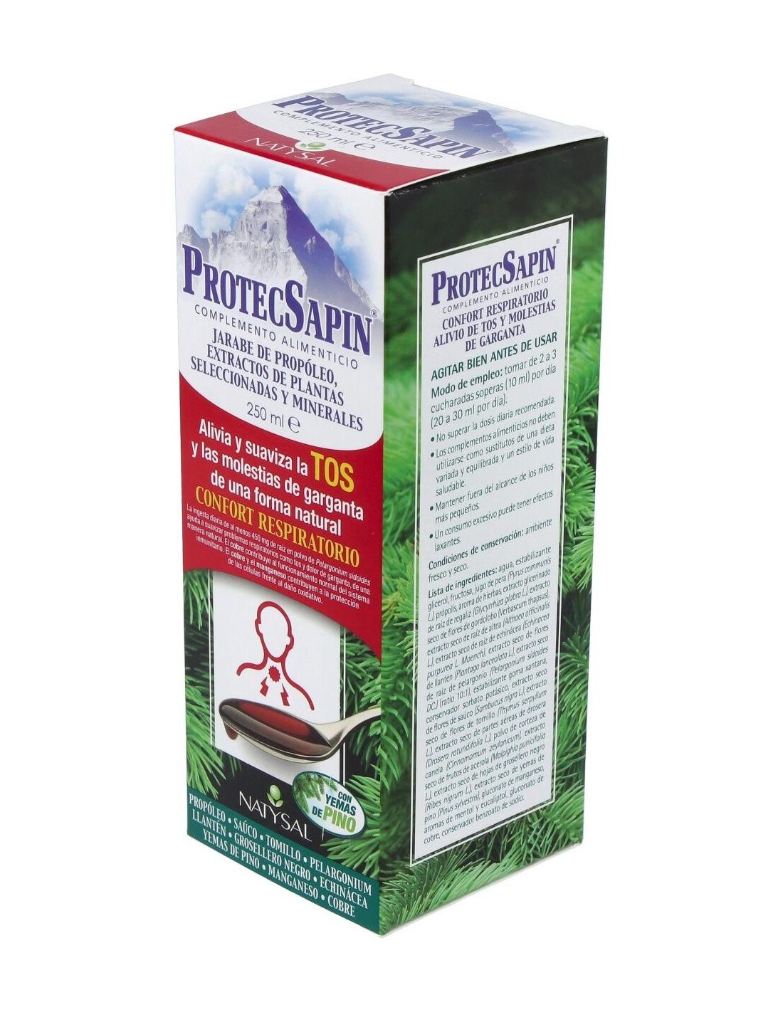 NATYSALProtecsapin Jarabe (Regalo Comprimidos De Propolis Y C) 250 ml de Natysal es un complemento natural para personas que buscan apoyar su bienestar respiratorio, combinando jarabe con comprimidos de propóleos y vitamina C para una fórmula equilibrada.