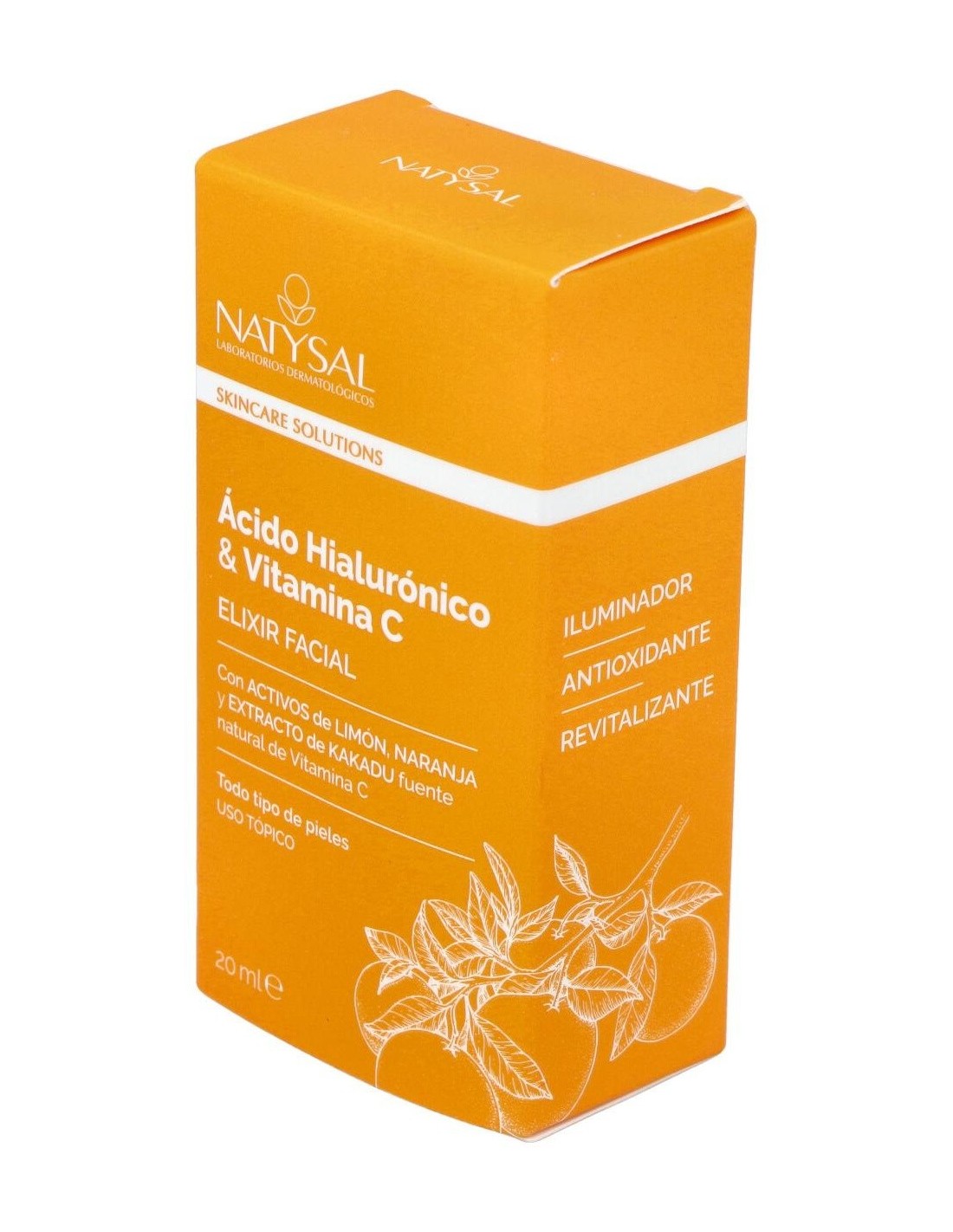 NATYSALEl Elixir Ácido Hialurónico y Vitamina C 20 ml de Natysal es un serum facial para personas que buscan mejorar la hidratación y luminosidad de la piel, formulado con ingredientes que favorecen su apariencia saludable.