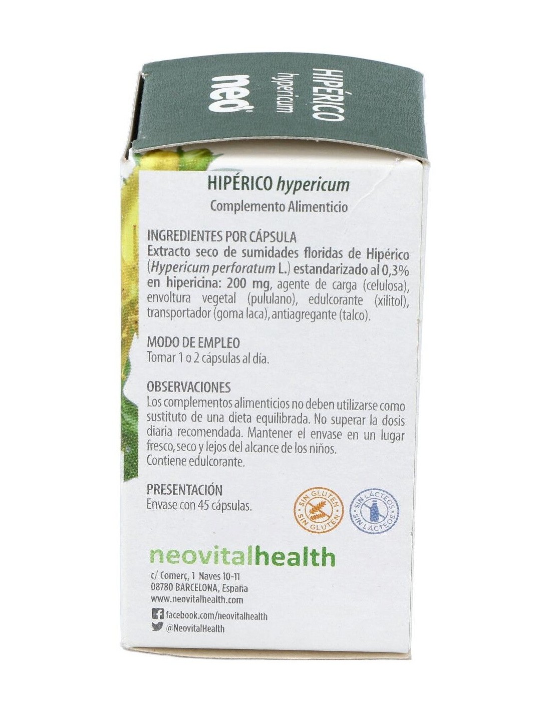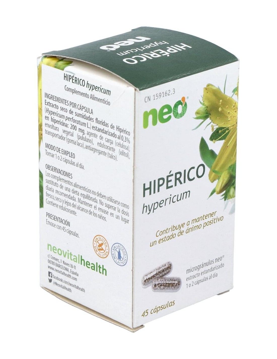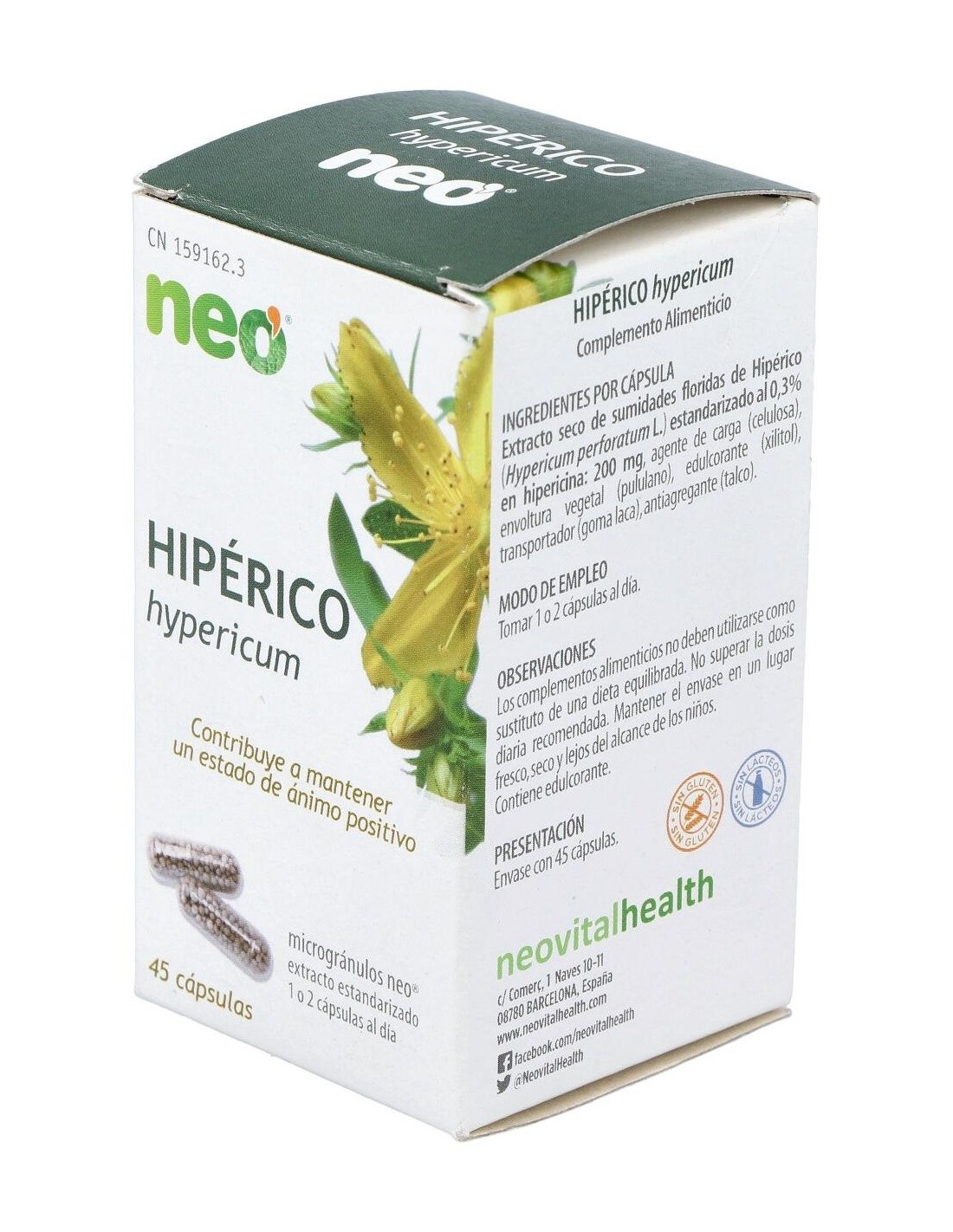 NEONeo | Neovital Hiperico 45cápsEl ritmo de vida actual, problemas en el trabajo o simplemente el estrés, pueden afectar a nuestro estado de ánimo. Neovital Hiperico es un complemento alimenticio a base de Hypericum perforatum que te ayudará a combatir estos momentos.