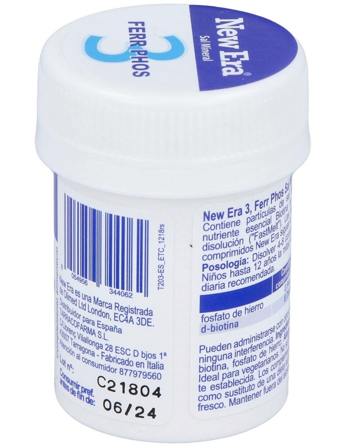 NEW ERANew Era Schüssler Nr.3 ferrum Phosphoricum 240comp complemento alimenticio a base de Sales de Schüssler número 3.