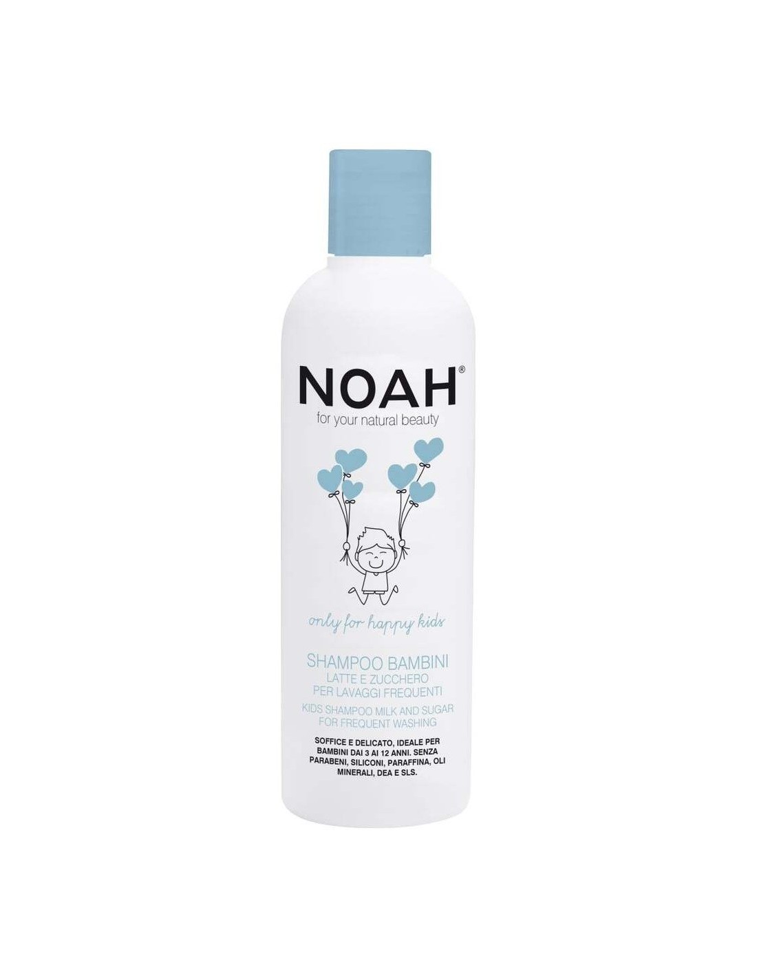 NOAHChampú apto para lavados frecuentes que respeta la fisiología del cuero cabelludo infantil. Su base limpiadora está compuesta por detergentes de origen vegetal, delicados con el cabello y el cuero cabelludo y enriquecidos por la presencia de ingredientes hidratantes como el azúcar y las proteínas de la leche. Fácil de enjuagar. El producto NO contiene Siliconas, Parabenos, Parafina, Aceites Minerales, DEA y SLS.