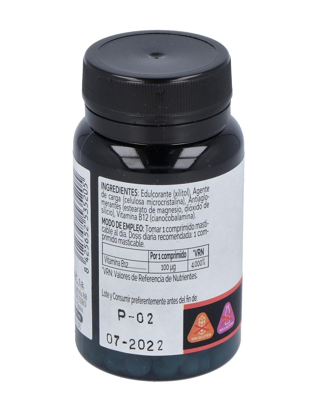 - Cada comprimido contiene 100 mcg de vitamina B12, contribuyendo al mantenimiento de niveles adecuados de esta vitamina esencial.
