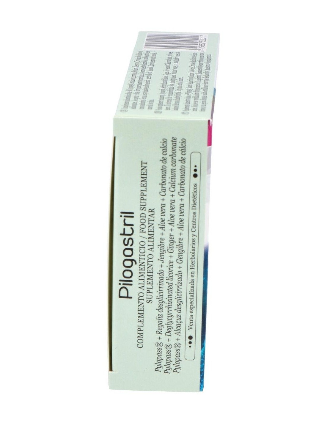 Edulcorantes (Xilitol, Sorbitol), Carbonato De Calcio, Pylopass® (Lactobacillus Reuteri), Regaliz Desglicirrizado, Aloe Vera (E.S., Ratio 200:1), Jengibre (E.S., Titulado Al = 5% En Gingerol), Aceite Esencial De Menta, Antiaglomerantes (Estearato De Magnesio, Dióxido De Silicio), Aroma.