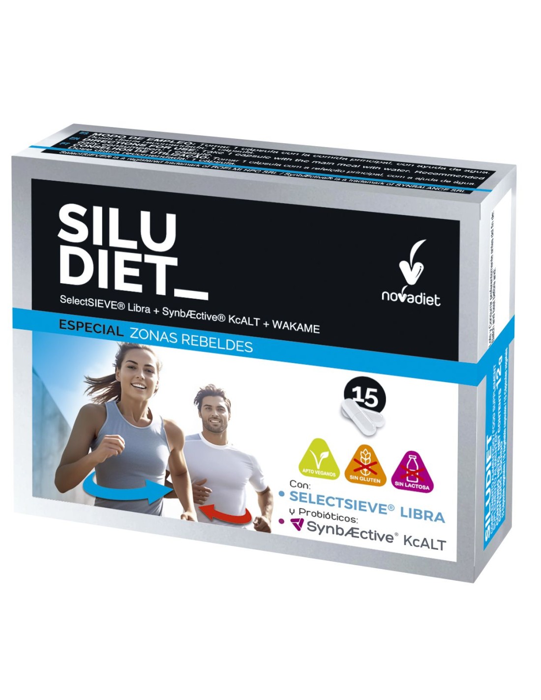 Siludiet de Nova Diet es un complemento alimenticio coadyuvante en el tratamiento del sobrepeso y la obesidad. Especial zonas rebeldes: grasa localizada en zona abdominal, glúteos y muslos, especialmente resistente. Ayuda a disminuir el apetito y a aumentar la saciedad.Siludiet tiene 2 ingredientes de marca registrada, Y un tercer ingrediente Ambos avalados por estudios científicos propios. Y ambos con la misma acción: modulan el metabolismo de los lípidos y de los hidratos de carbono y controlan el apetito y las ganas de comer.Principios activos: