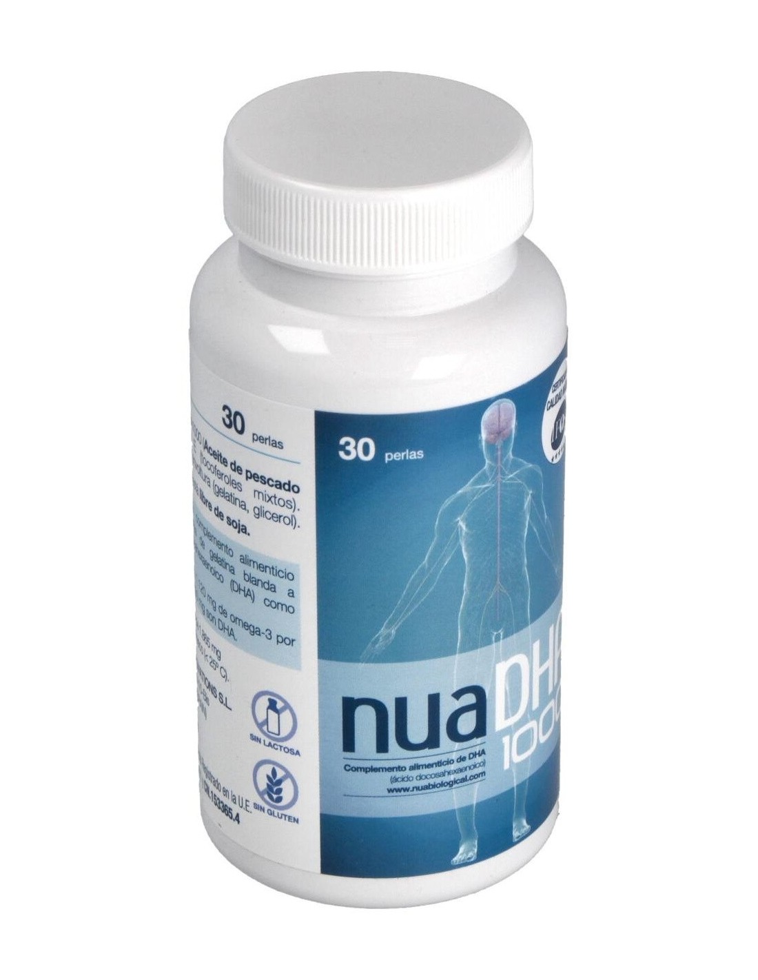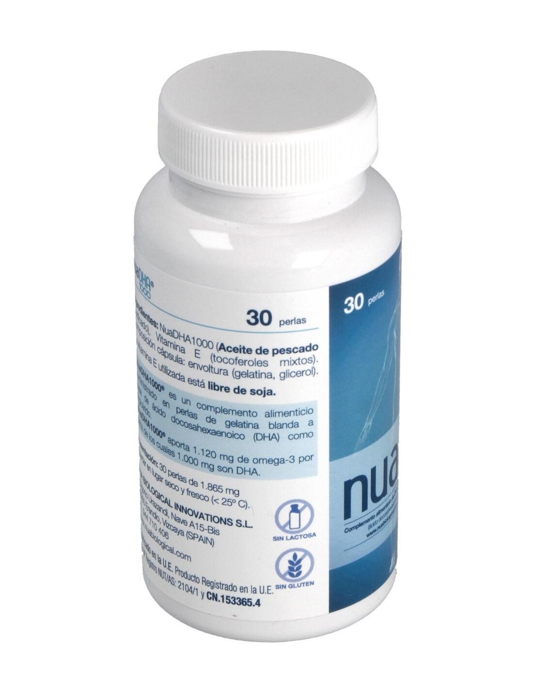 NUAComplemento alimenticio muy puro y concentrado a base de omega-3 (procedente de pescado). Una perla de NuaDHA 1000 contiene aprox.