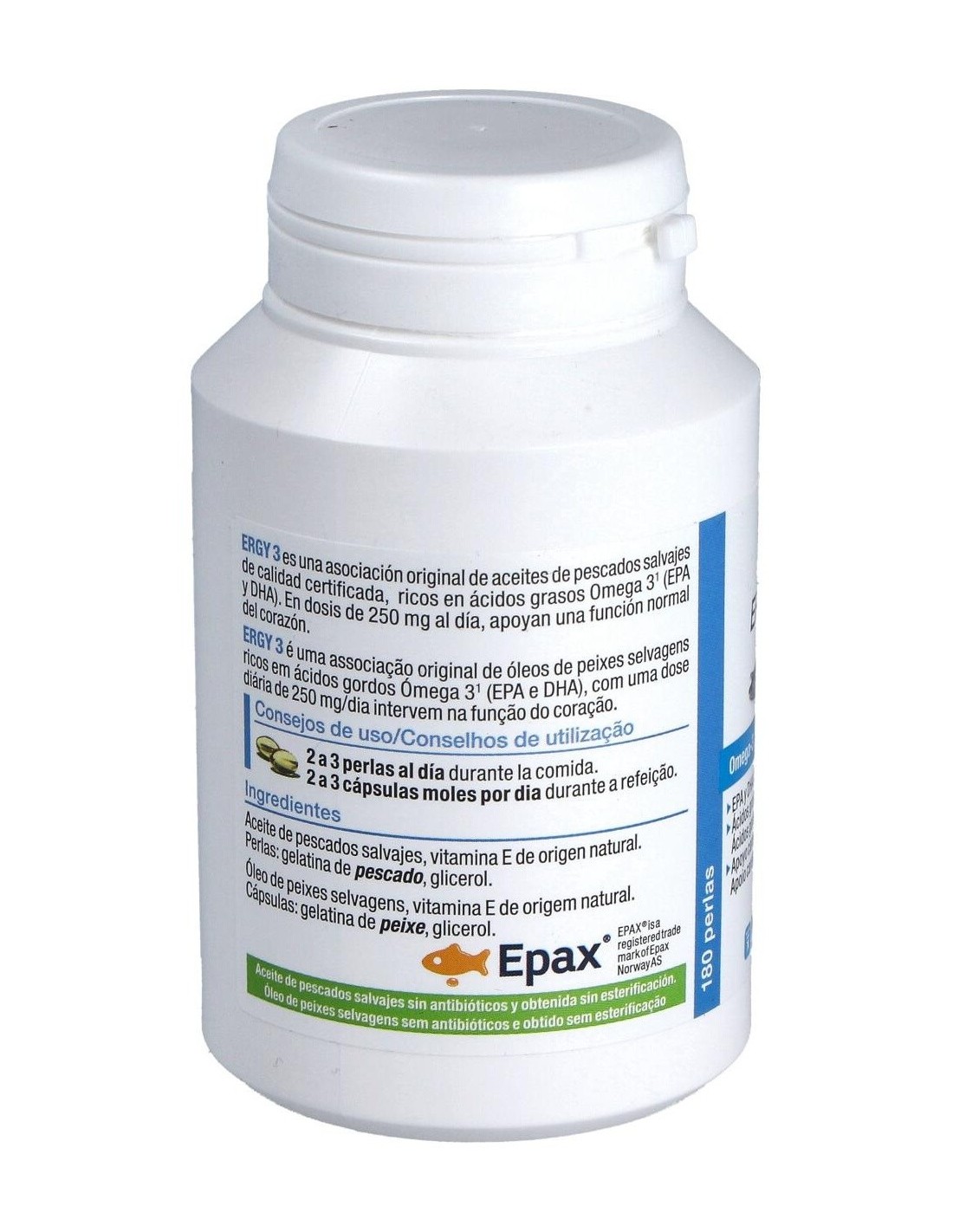 NUTERGIAComplemento alimenticio compuesto de aceites de pescados EPAX de calidad certificada. Los pescados grasos como la anchoa, utilizado en ERGY 3, permiten obtener un aceite rico en ácidos grasos omega-3, especialmente en EPA y DHA.