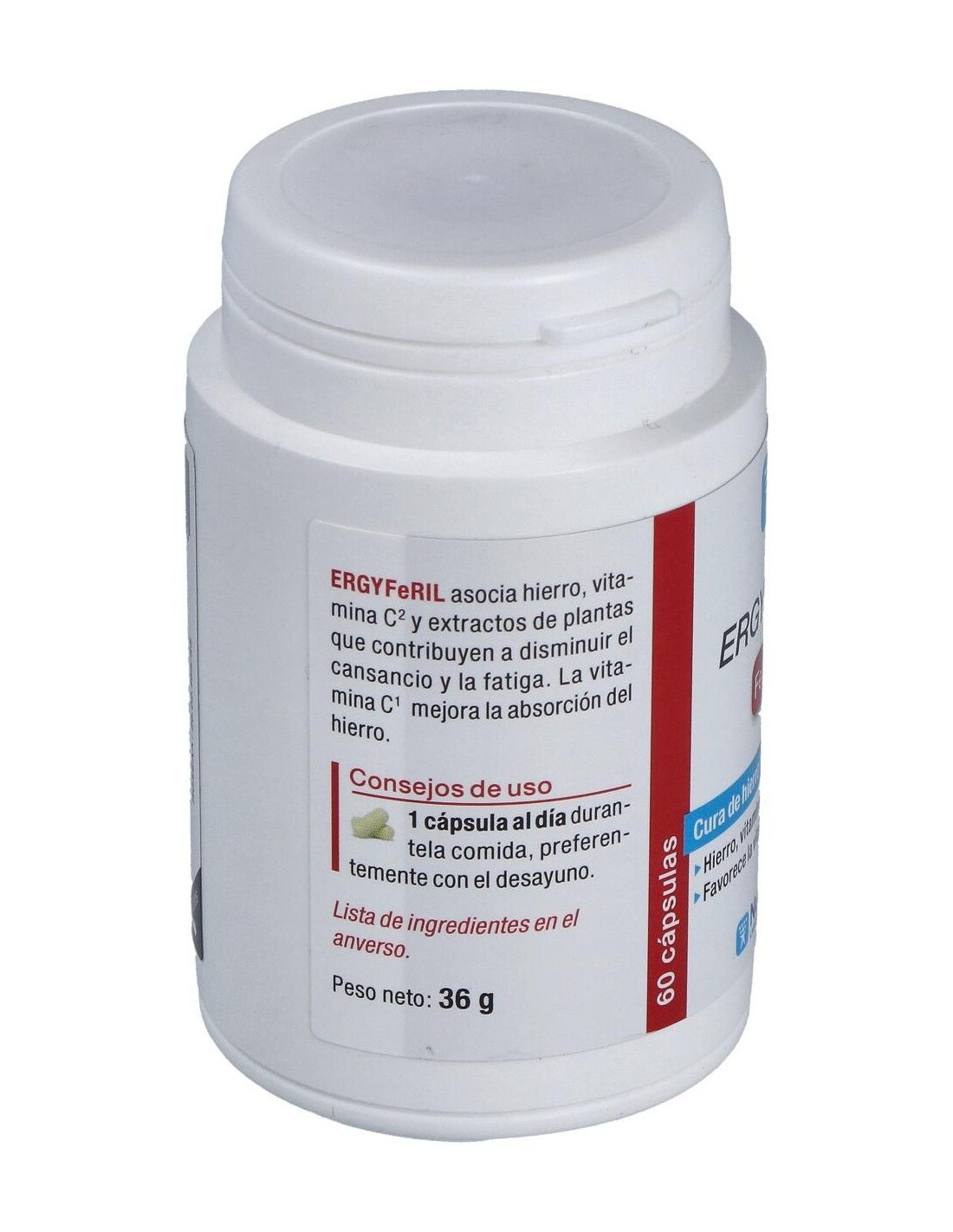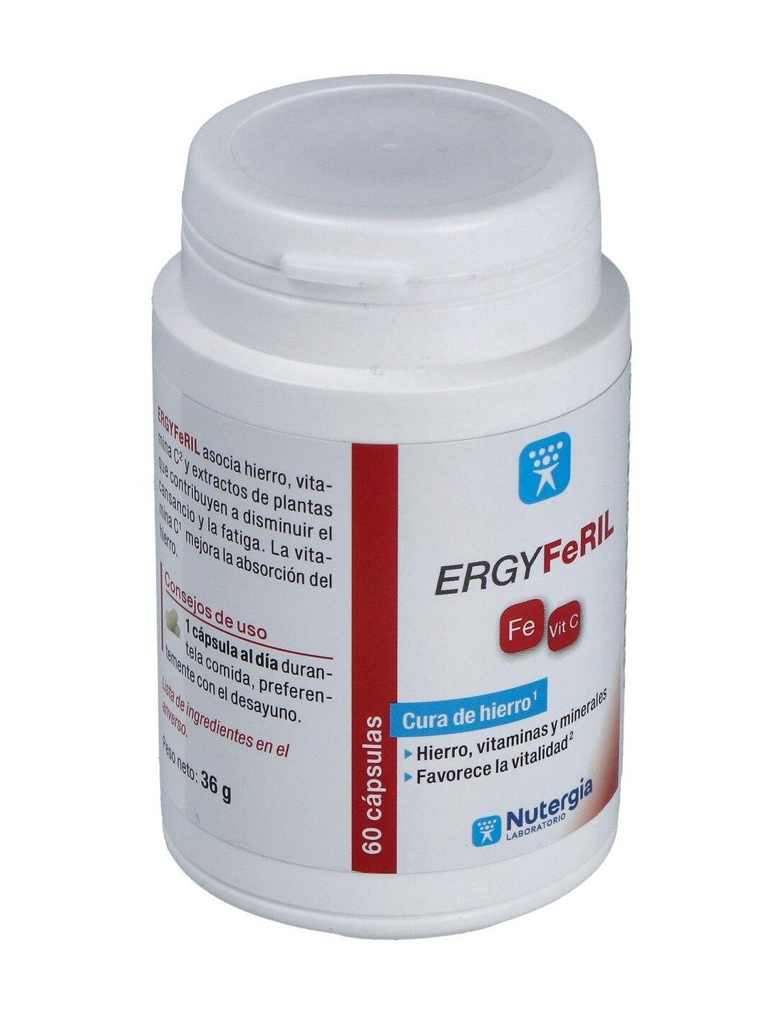 NUTERGIAErgyferil es una asociación de 8 vitaminas, 4 minerales y 3 plantas con propiedades complementarias de gran interés en estados de carencia o deficienc