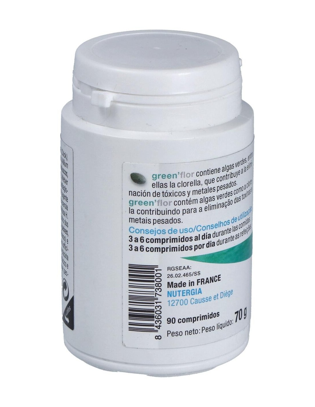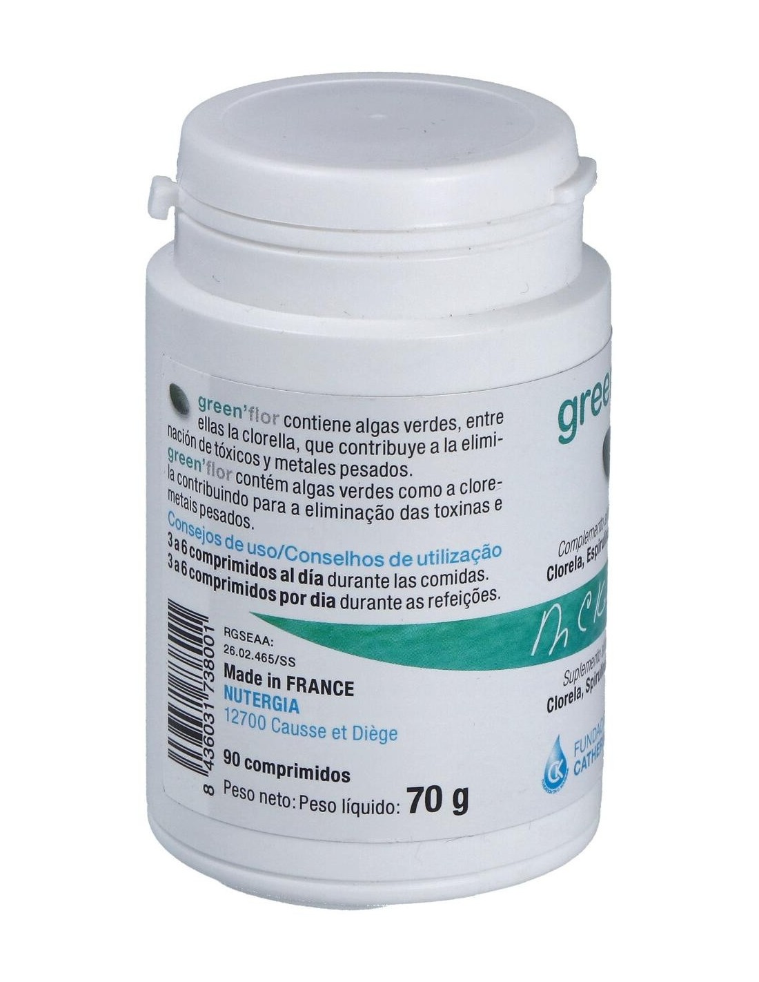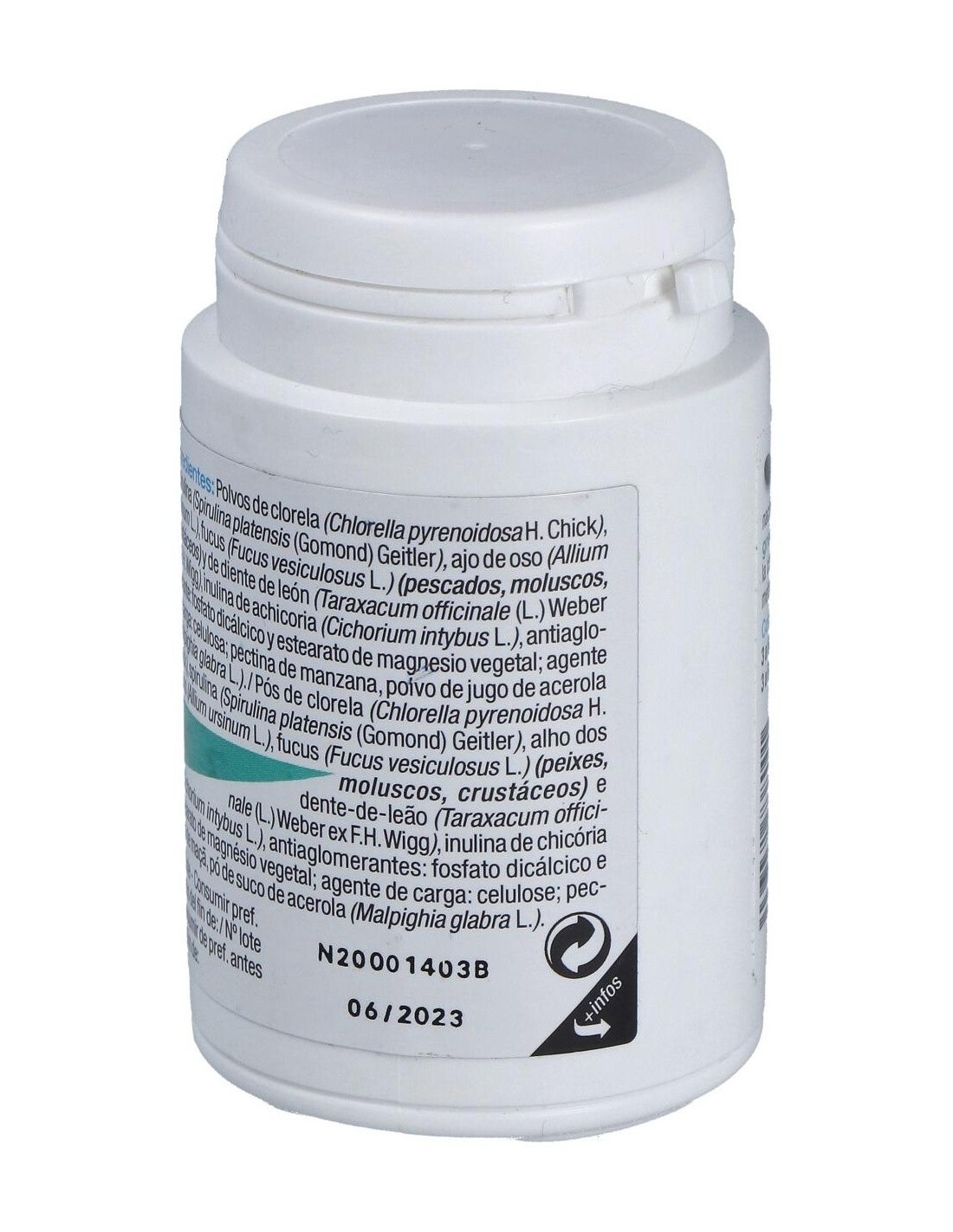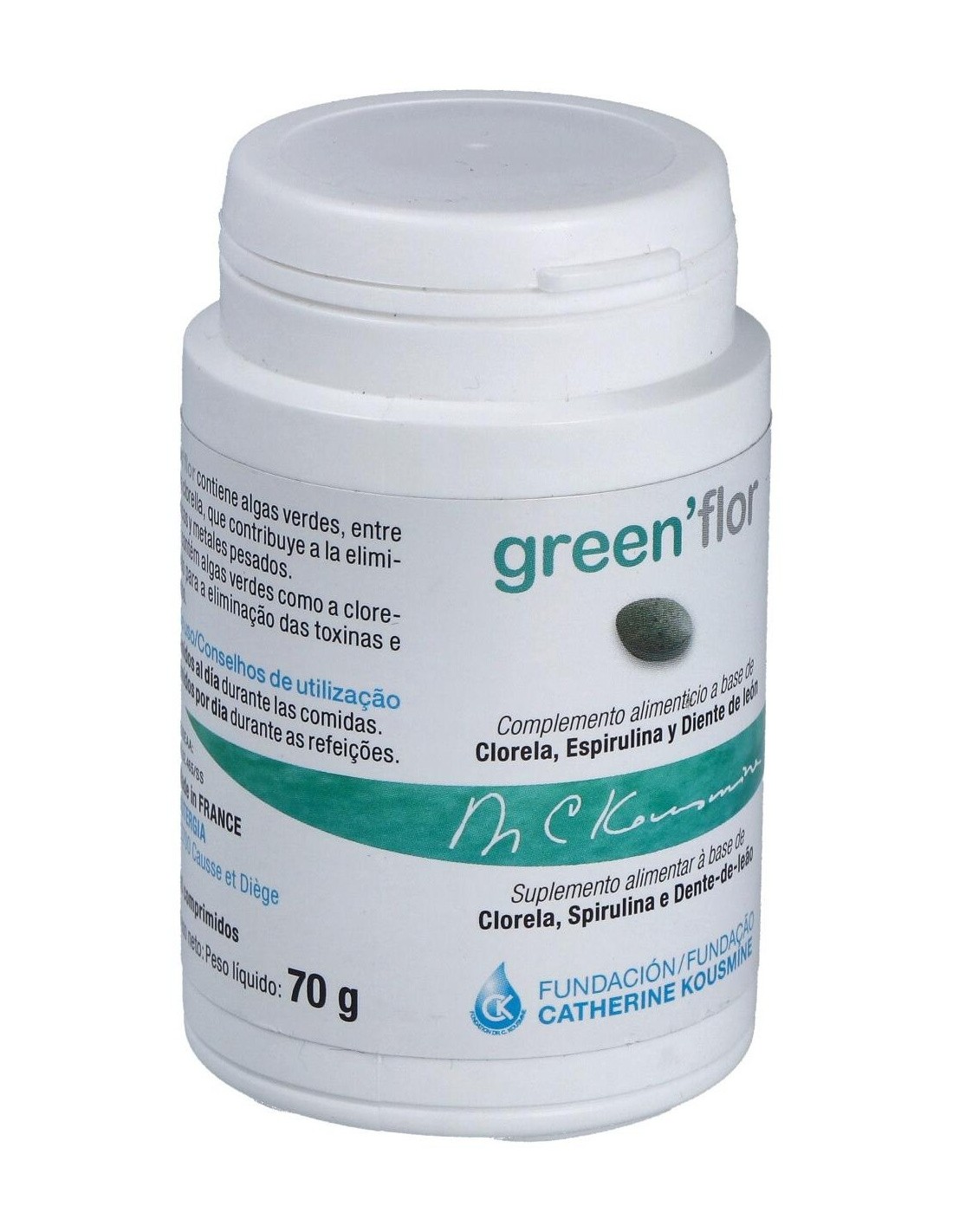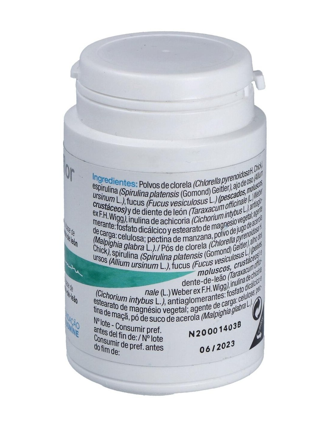 Las algas verdes, en particular la Chlorella, contribuyen en la eliminación de las toxinas y metales pesados, estimulando hígado y riñones, órganos de la "detox". Esta acción se ve completada por la presencia de Ajo y Diente de León. Todas estas plantas así como el Fucus se conocen por su acción a nivel del confort intestinal. Composición por comprimido: