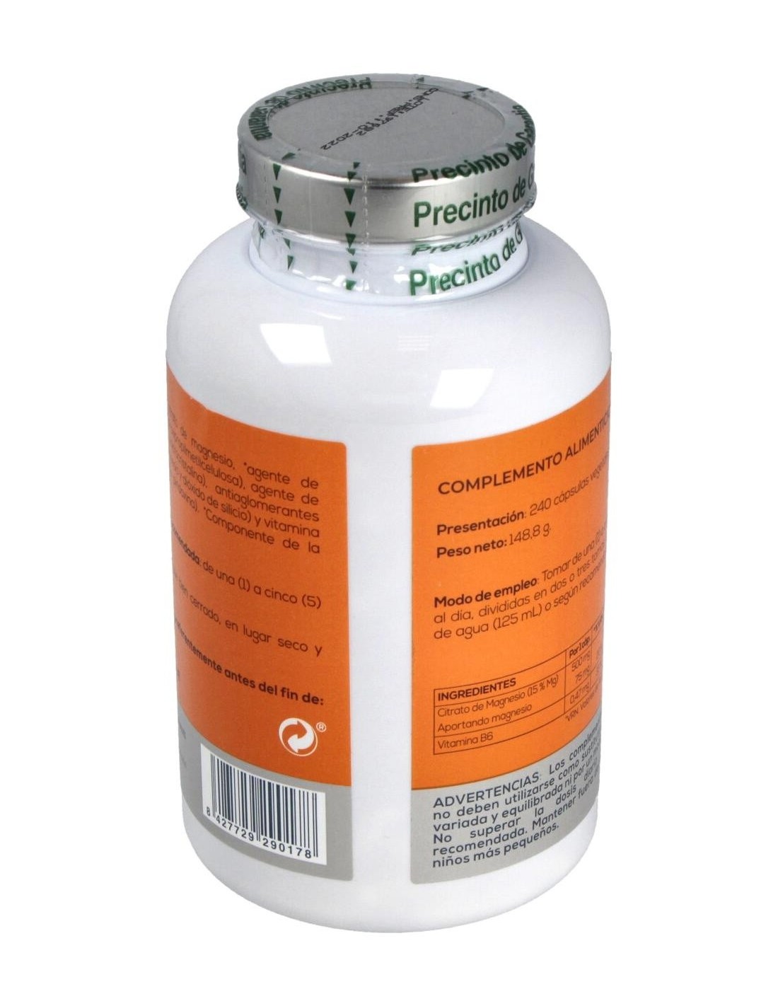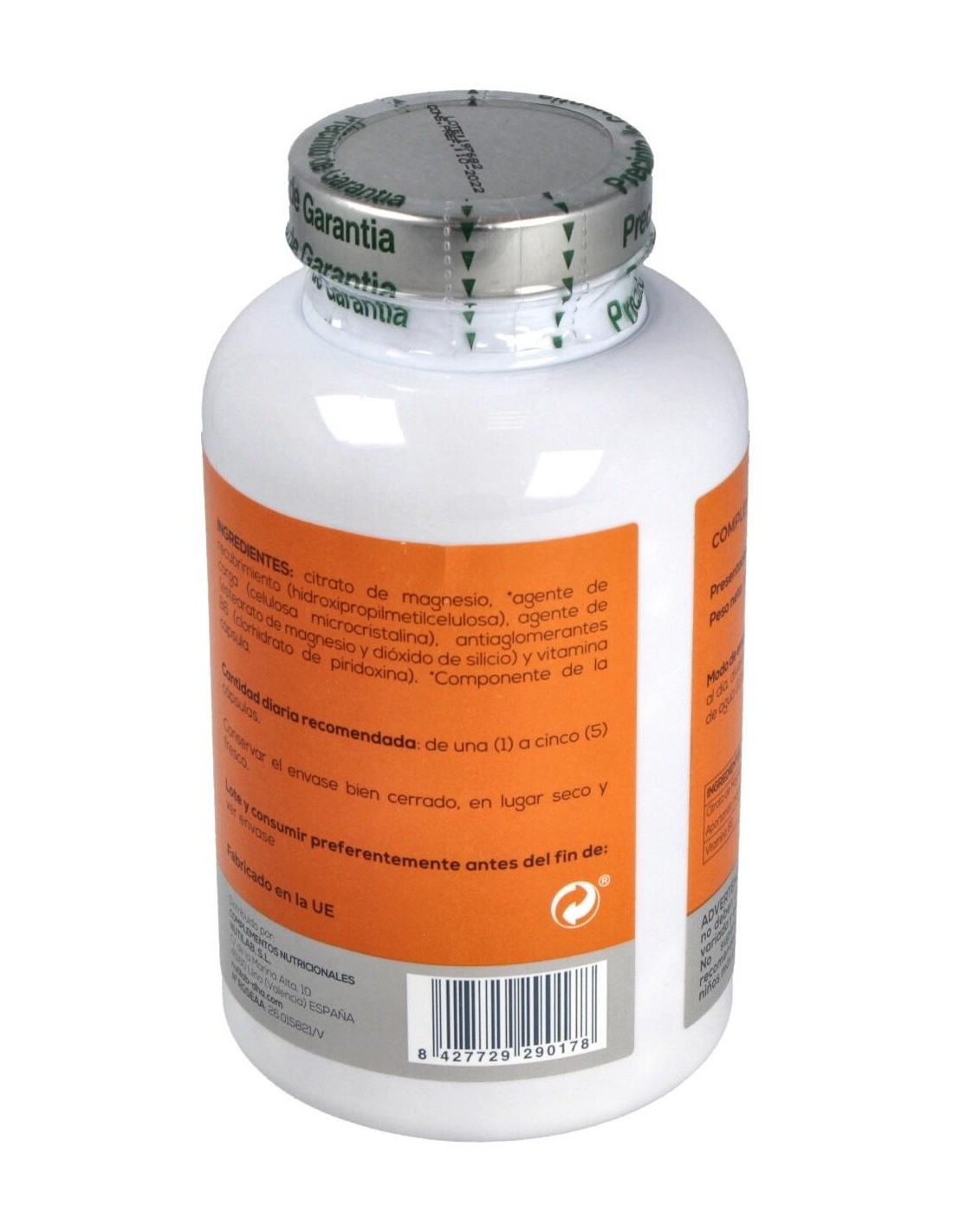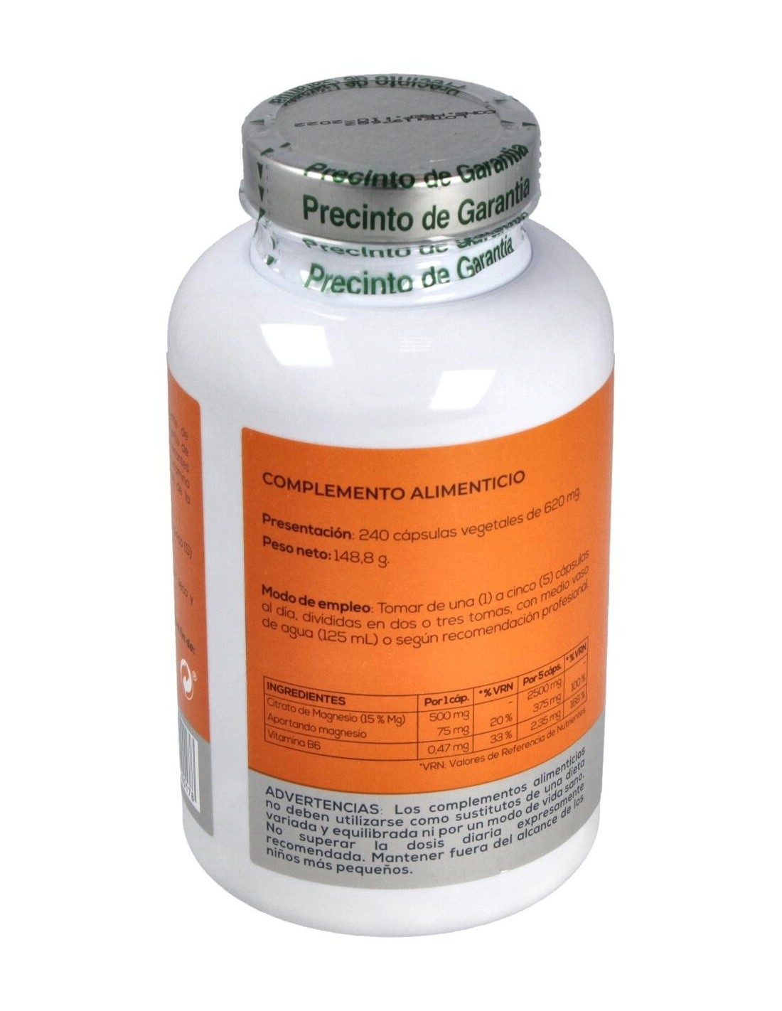 Suplemento a base de citrato de magnesio y vitamina B6. Las cápsulas de citrato de magnesio, contienen un 15% de magnesio elemental, es decir, 500 mg de citrato de magnesio contienen 75 mg de magnesio elemental.