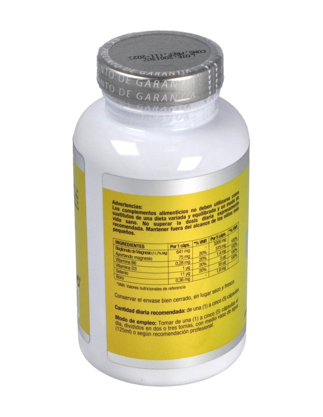 Complemento alimenticio en forma de cápsulas, elaborado a base de bisglicinato de magnesio, vitaminas y minerales, que está indicado para personas que necesiten mejorar el rendimiento físico. Además el magnesio, asociado con la vitamina B6, contribuye a reducir el cansancio y la fatiga, al funcionamiento normal del sistema nervioso, y al mantenimiento normal de huesos y músculos.