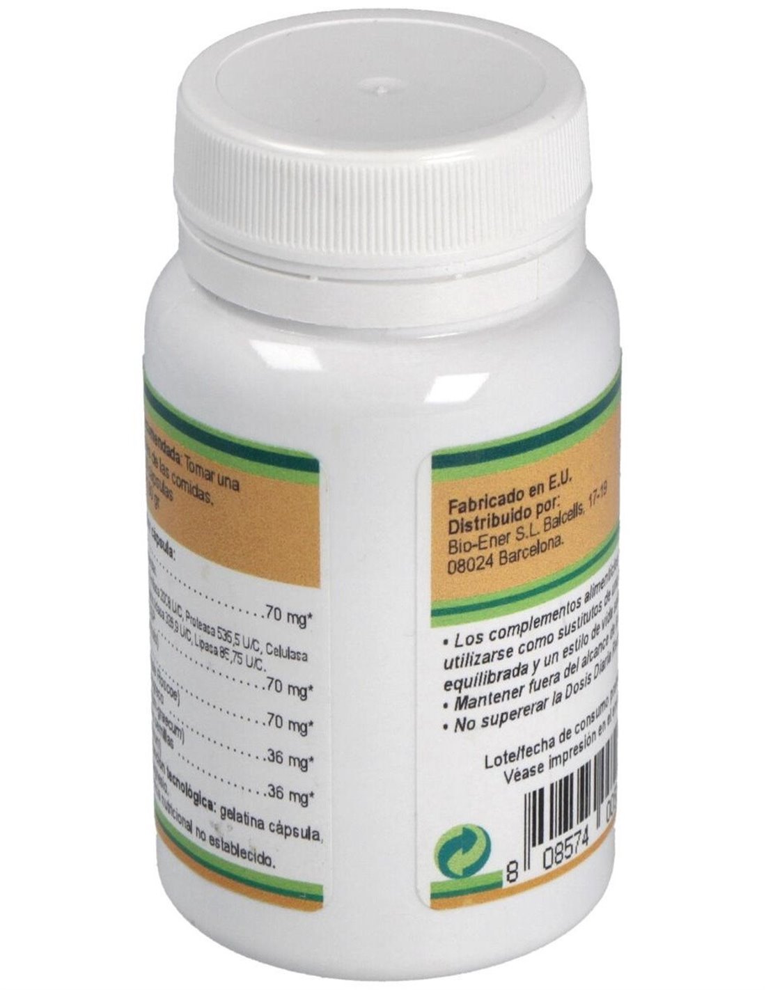 Las enzimas son proteínas dotadas de un poder catalítico, esencial para la vida. El proceso normal de digestión mediante la acción de las enzimas, da como resultado tres funciones principales: digerir los carbohidratos (amilasas), las proteínas (proteasas) y las grasas (lipasas). Se acompaña de fenogreco y papaya que ayudan a mejorar la digestión.