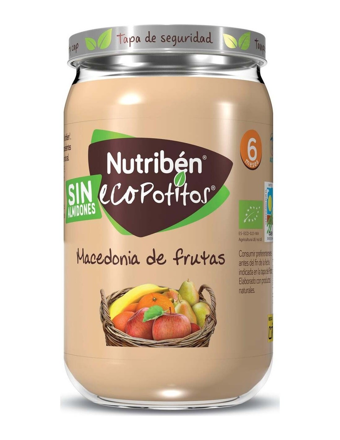 Nutriben Potito Frutas Variadas 235gr está elaborado a base de manzana, pera y melocotón. Libres de almidón. Para bebés a partir de los 6 meses, dentro de una dieta equilibrada. No contiene gluten, huevo, ni leche. Sin aromas ni especias.