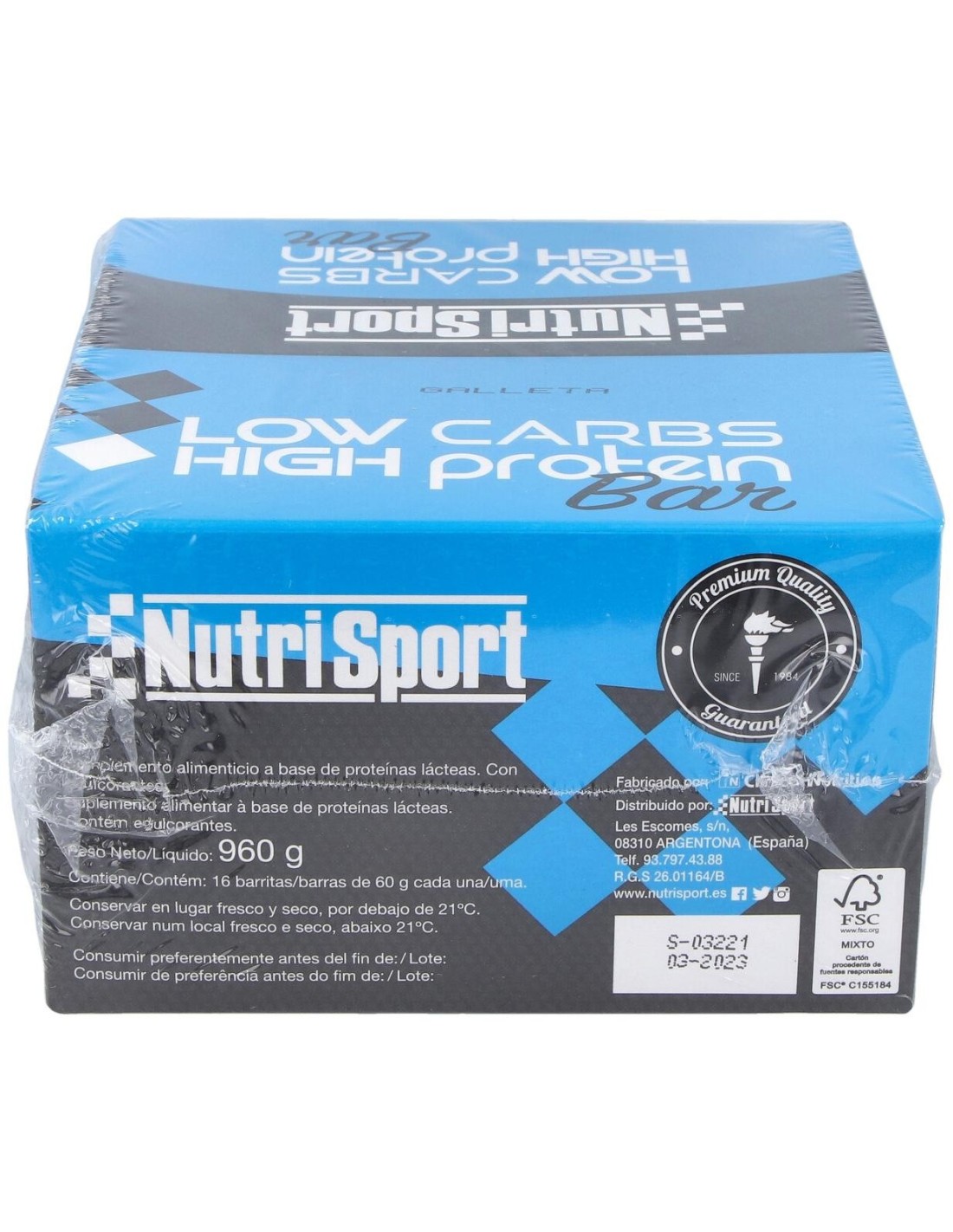 NUTRISPORTLOW CARBS HIGH PROTEIN choco-galleta 16barritas de NUTRISPORT