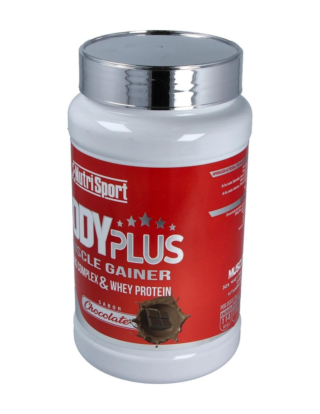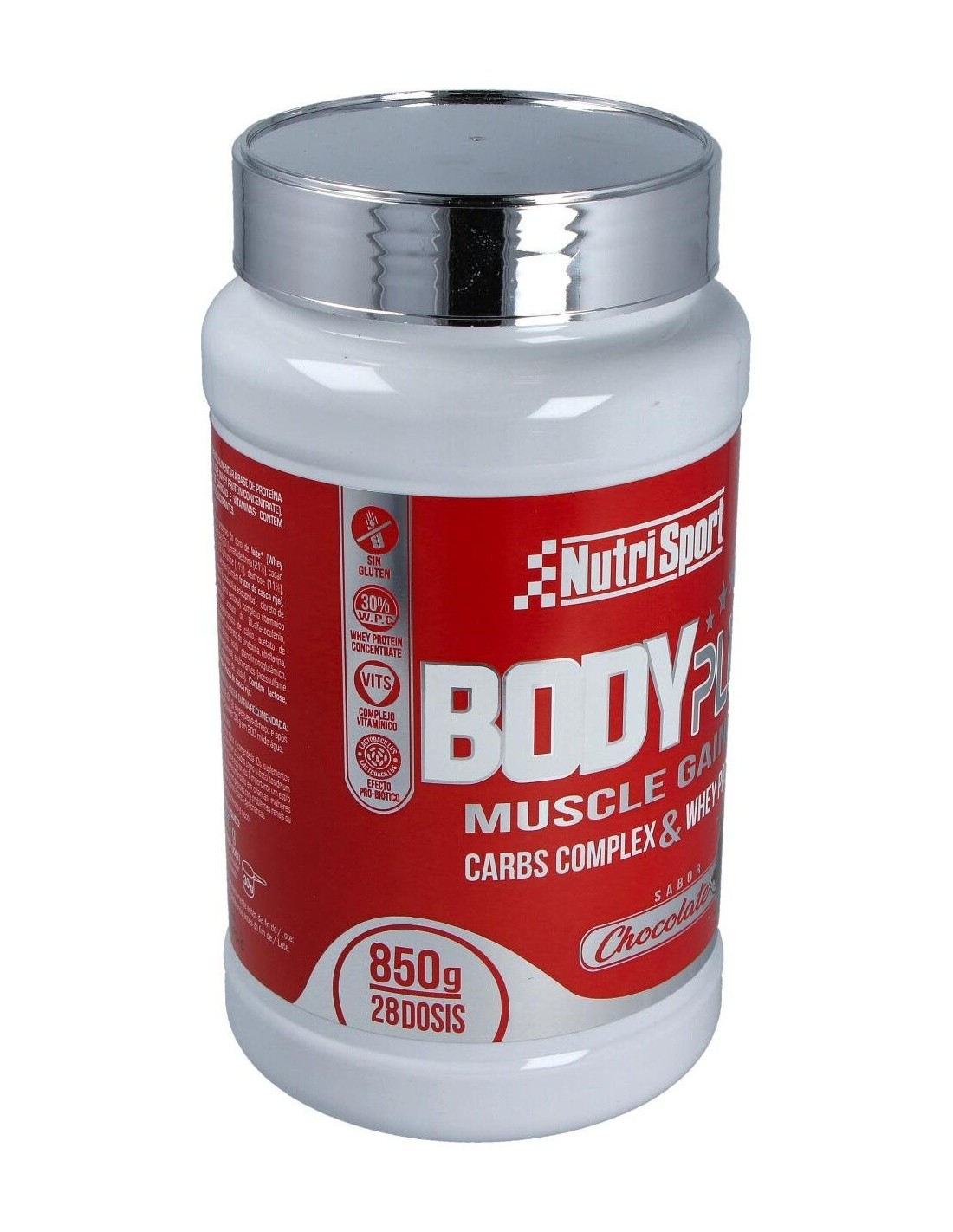 BodyPlus Nutrisport Weight Gainer - Chocolate + 850 g. es un suplemento alimenticio para deportistas que combina proteínas y carbohidratos para favorecer la ganancia de masa muscular. Combina proteínas del suero de leche, un complejo de carbohidratos, complejo multivitamínico vitaminas del grupo B (50% VRN*), vitamina B6, vitamina D y fermentos lácteos (L. Acidophilus)con efecto probiótico. Sabor chocolate.