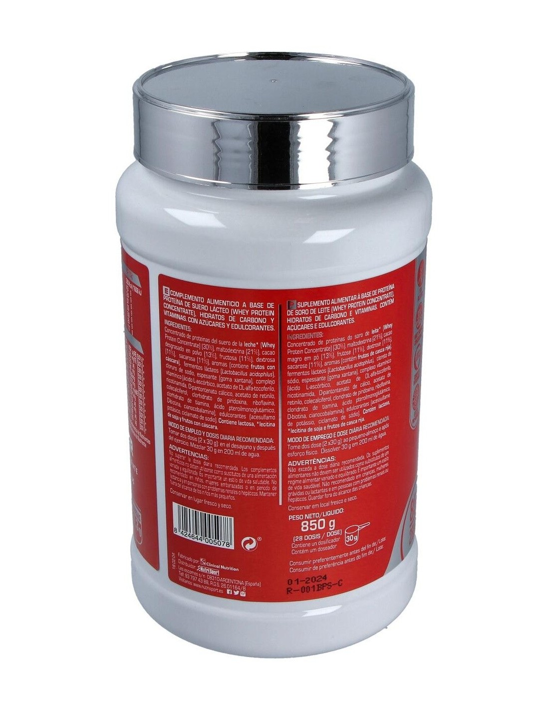 Concentrado de proteínas del suero de la leche (Whey Protein Concentrate)(30%)1 (32%)2 (33%)3, maltodextrina (21%)1,2 (33%)3, cacao desgrasado en polvo (13%)1, fructosa (11%), dextrosa (11%), sacarosa (11%), fresa en polvo (10%)2, aromas (contiene frutos con cáscara1), fermentos lácteos (L.Acidophillus), cloruro de sodio1, espesante (goma xantana)1, complejo vitamínico (ácido L-ascórbico, acetato de DL-alfa-tocoferilo, nicotamida, D-pantotenato cálcico, acetato de retinilo, colecalciferol, clorhidrato de piridoxina, riboflavina, clorhidrato de tiamina, ácido pteroilmonoglutámico, D-biotina, cianocobalamina), edulorantes (Acesulfamo potásico, ciclamato de sodio1, Sucralosa2,3), Colorantes (E-124, E-122)2.