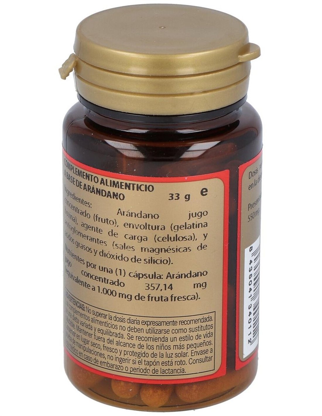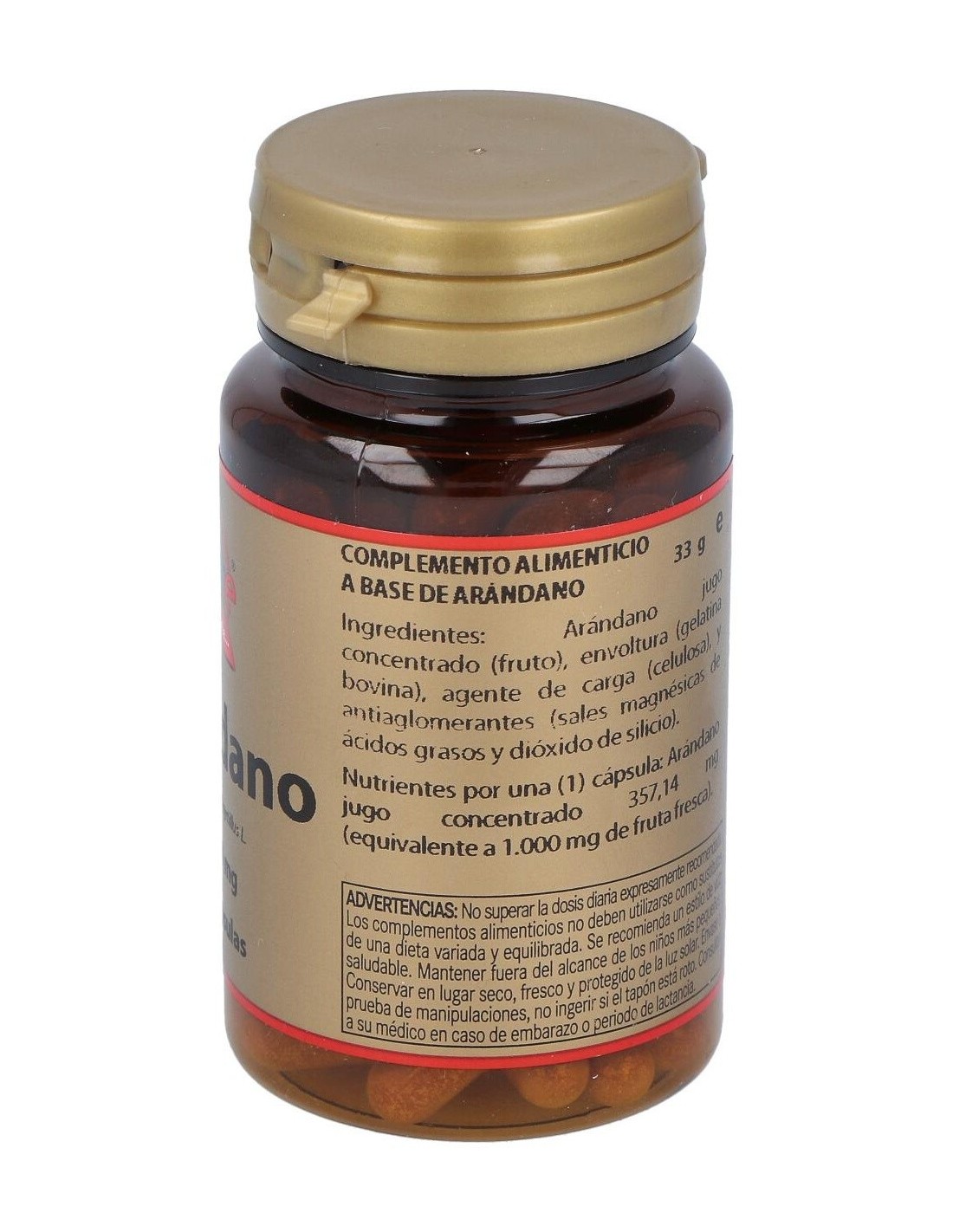 Complemento alimenticio de arándano que ayuda a proteger los problemas cardiovasculares y sus antiadherentes de infecciones digestivas y urinarias. Rico en antioxidantes y en bioflavonoides. Las frutas son vasoprotectores, cicatrizantes, antidiarreicos y protectores de la mucosa gástrica, por lo que está indicada en estomatitis, faringitis y diarrea. También útil para varices, hemorroides, flebitis, amenorrea, hemorragia vaginal o uterina. Arbusto de regiones montañosas con bayas negro-azuladas, ricas en antocianósidos y taninos.